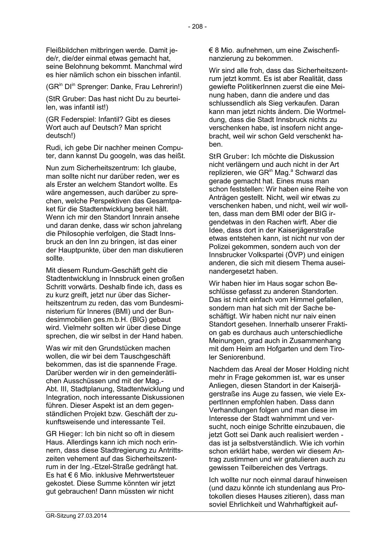 kann man jetzt nichts ändern. Die Wortmeldung, dass die Stadt Innsbruck nichts zu