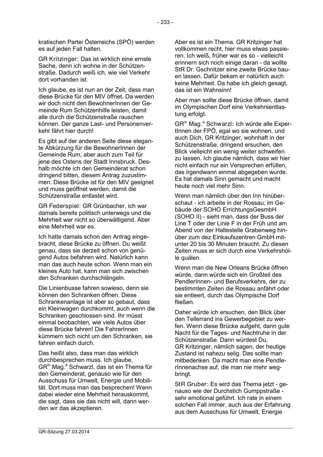 jene des Ostens der Stadt Innsbruck. Deshalb möchte ich den Gemeinderat schon