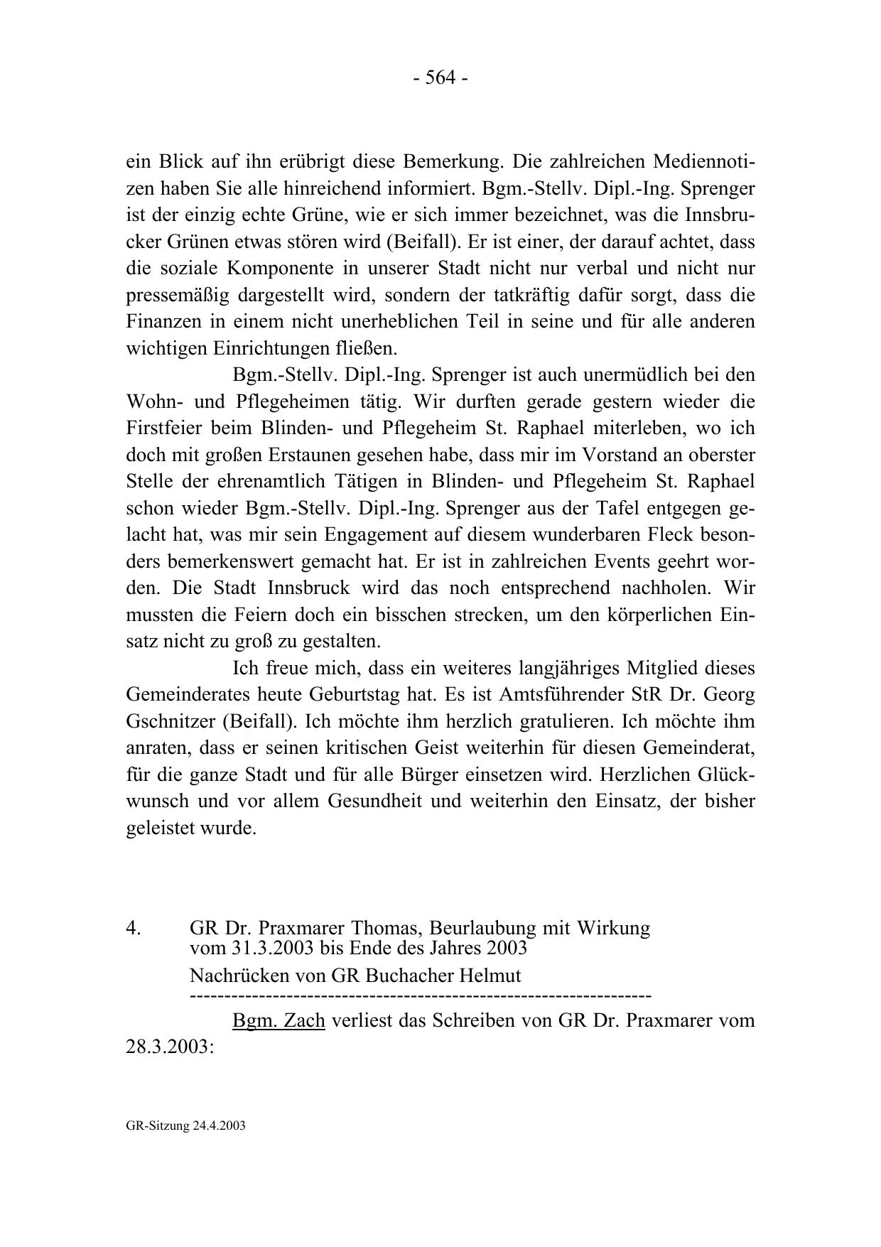 GR Dr. Praxmarer Thomas, Beurlaubung mit Wirkung