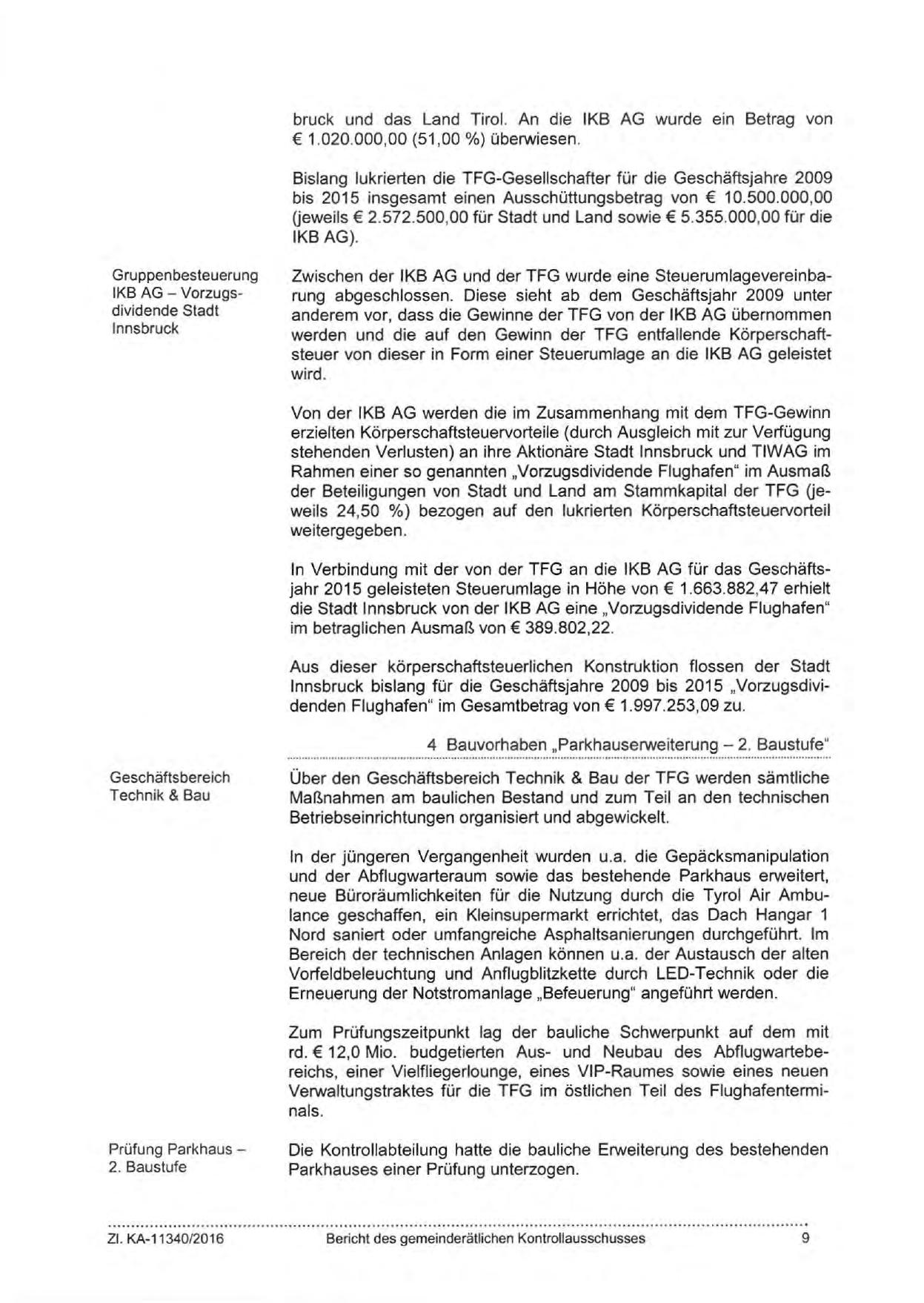 Innsbruck bislang für die Geschäftsjahre 2009 bis 2015 "Vorzugsdividenden Flughafen" im Gesamtbetrag von € 1.997.253,09 zu.