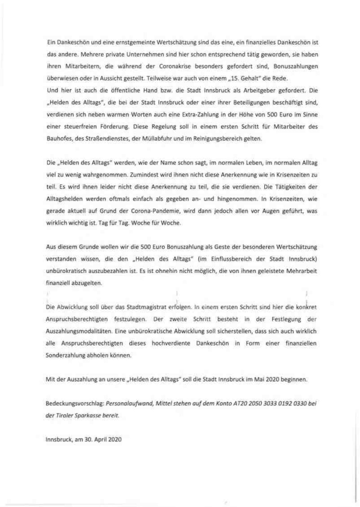 Mit der Auszahlung an unsere „Helden des Alltags" soll die Stadt Innsbruck im Mai 2020 beginnen.