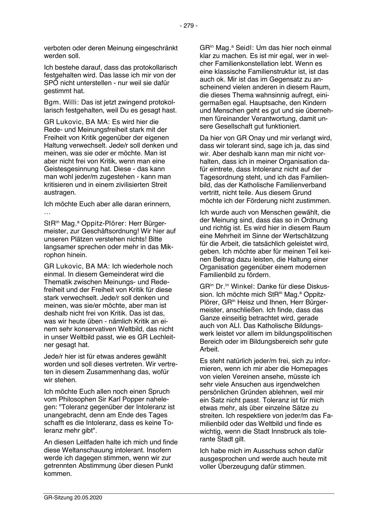 wichtig, wenn die Stadt Innsbruck als tolerante Stadt gilt.