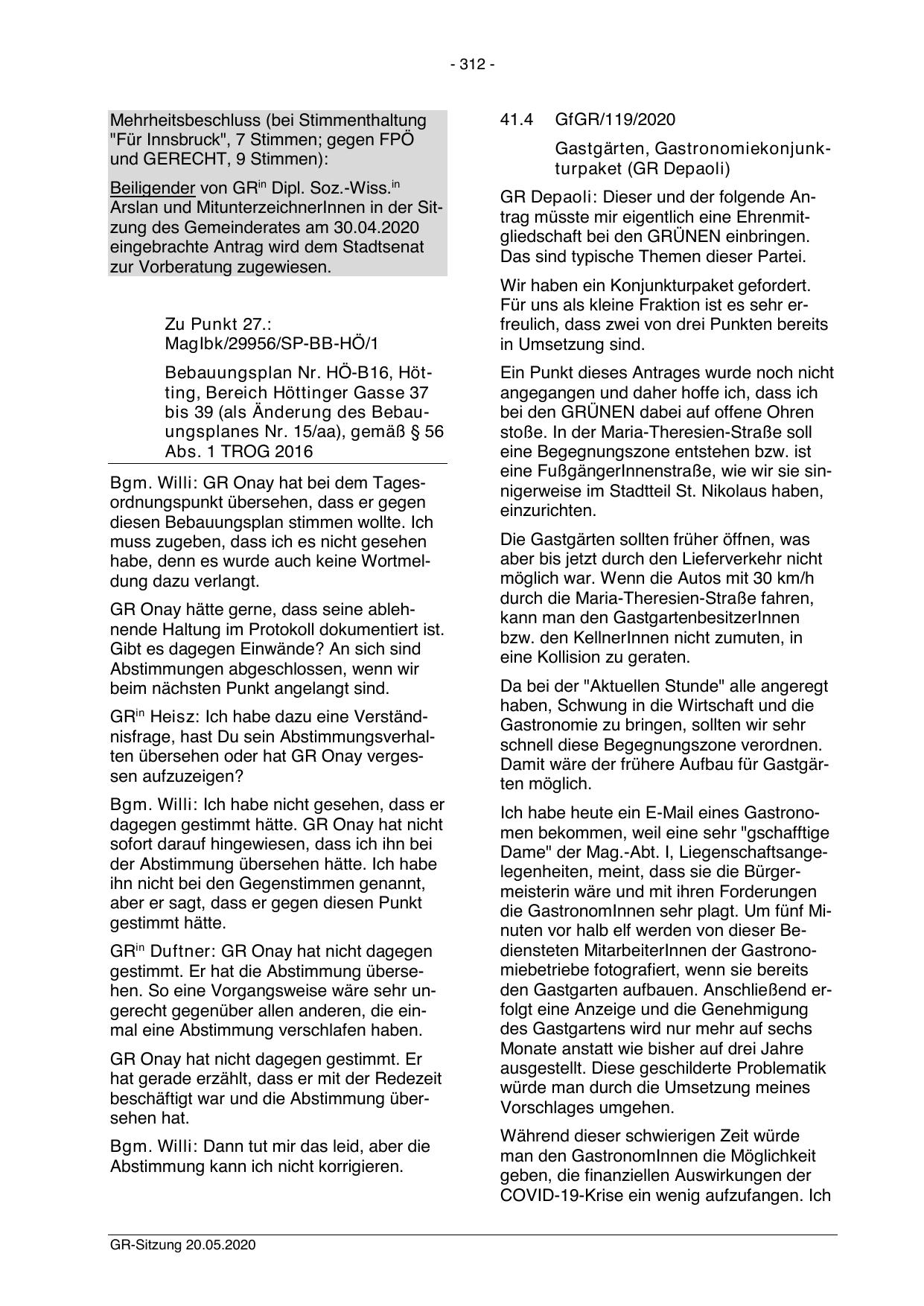 Bgm. Willi: GR Onay hat bei dem Tagesordnungspunkt übersehen, dass er gegen
