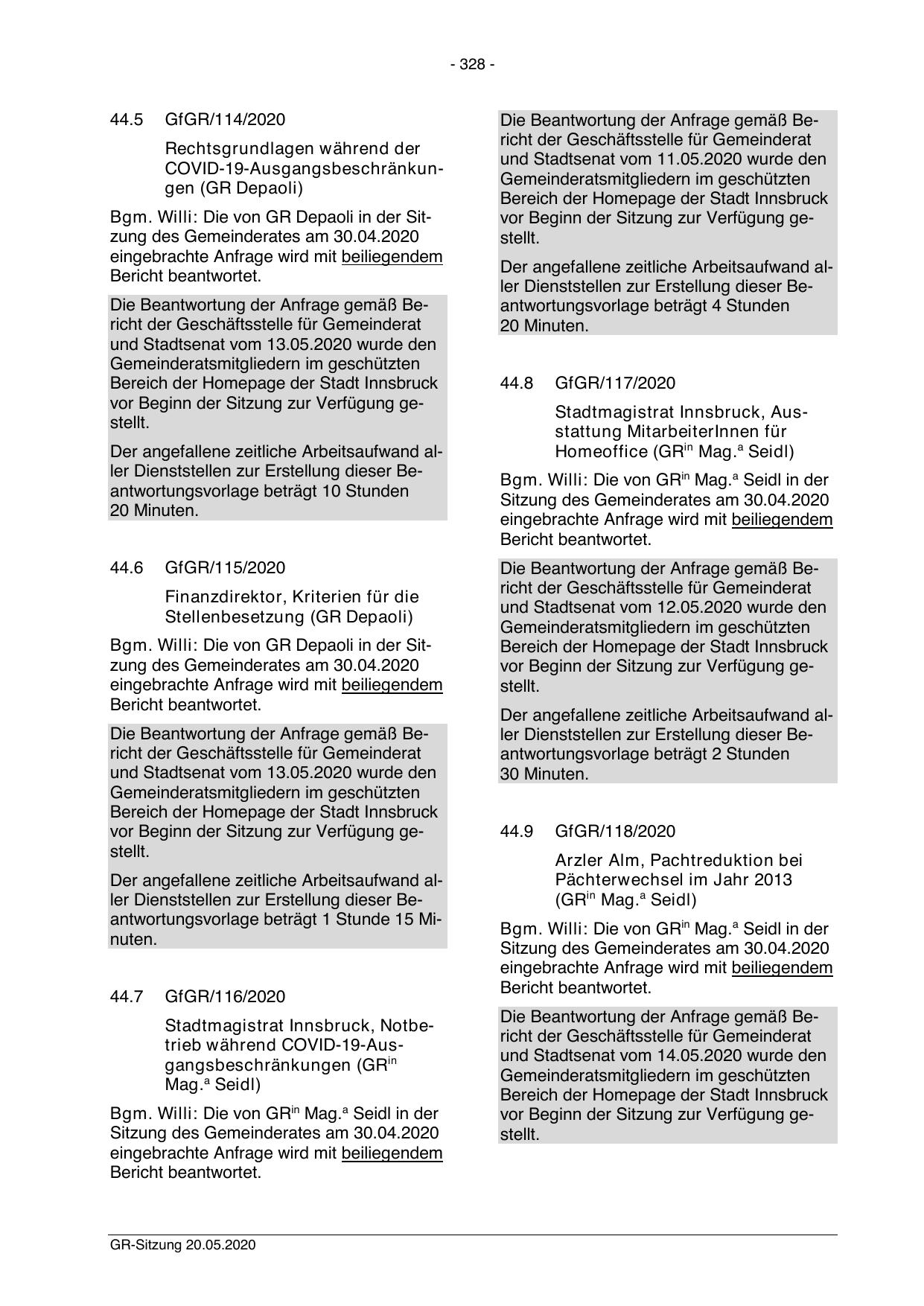 Bgm. Willi: Die von GR Depaoli in der Sitzung des Gemeinderates am 30.04.2020