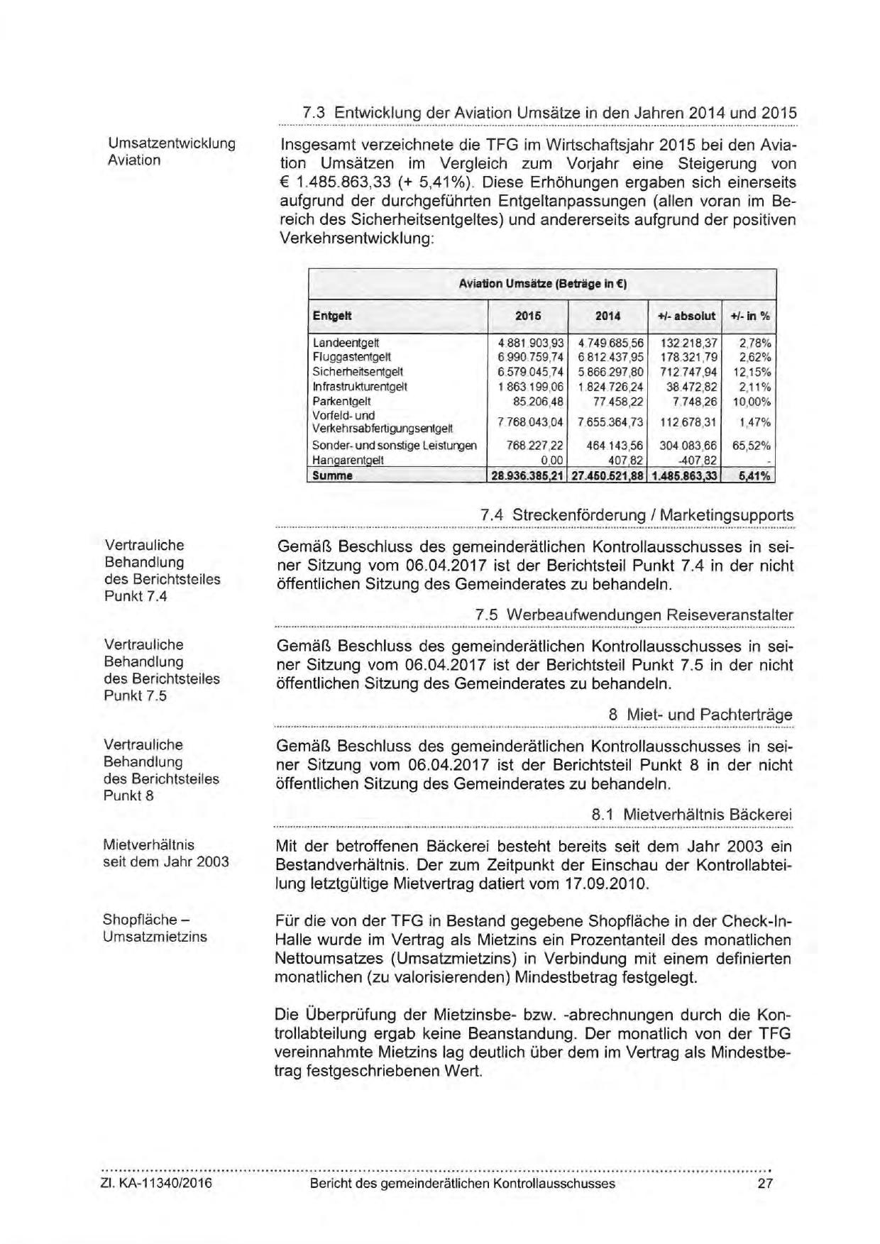 Gemäß Beschluss des gemeinderätlichen Kontrollausschusses in seiner Sitzung vom 06.04.2017 ist der Berichtsteil Punkt 7.5 in der nicht