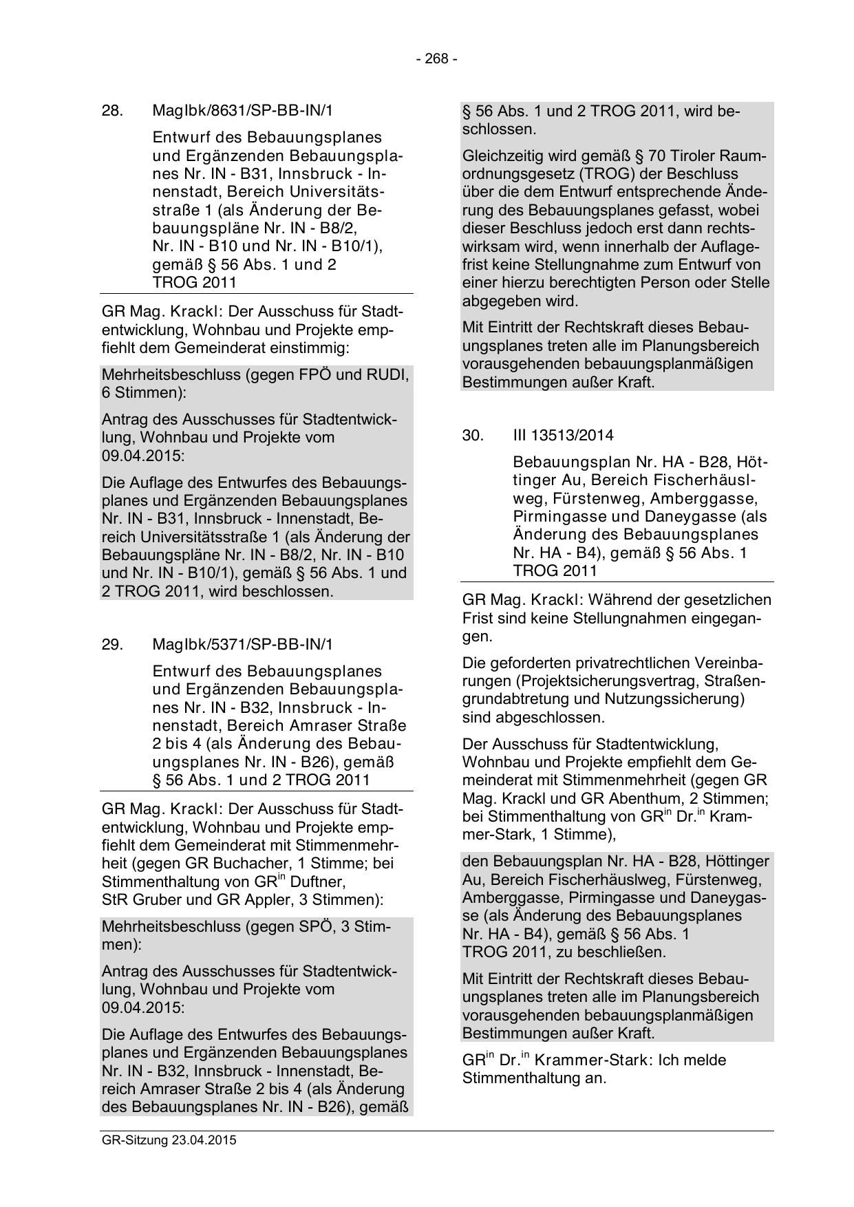 § 56 Abs. 1 und 2 TROG 2011, wird beschlossen.