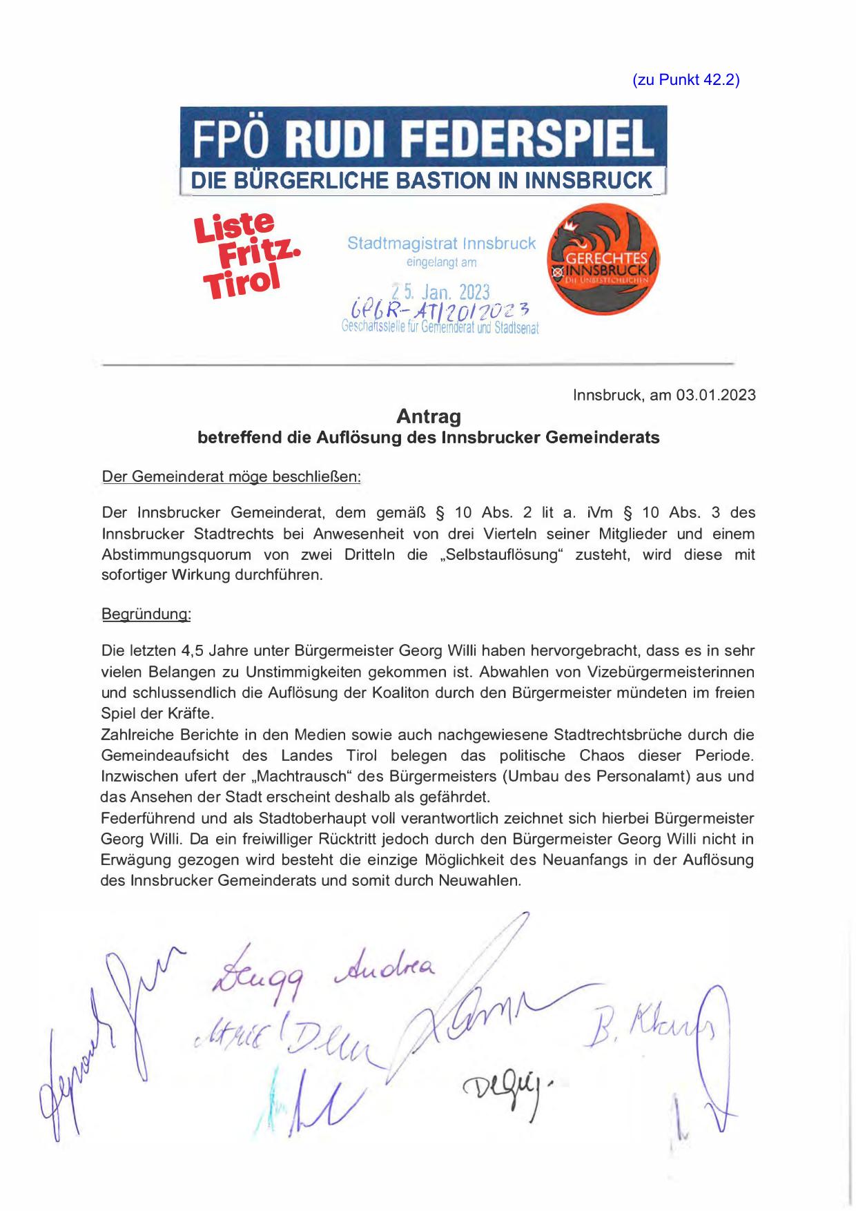 betreffend die Auflösung des lnnsbrucker Gemeinderats
