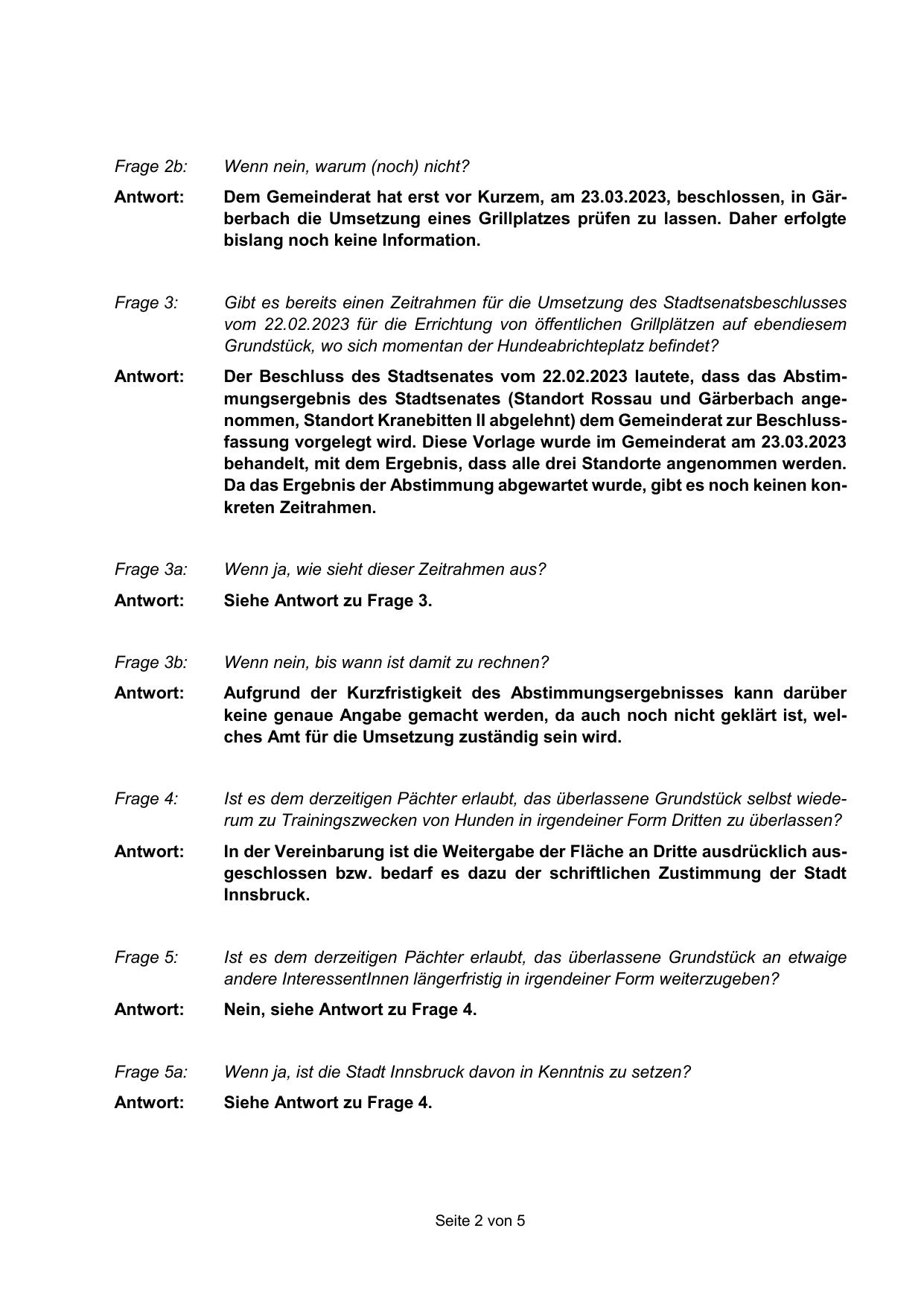 Der Beschluss des Stadtsenates vom 22.02.2023 lautete, dass das Abstimmungsergebnis des Stadtsenates (Standort Rossau und Gärberbach angenommen, Standort Kranebitten II abgelehnt) dem Gemeinderat zur Beschlussfassung vorgelegt wird. Diese Vorlage wurde im Gemeinderat am 23.03.2023
