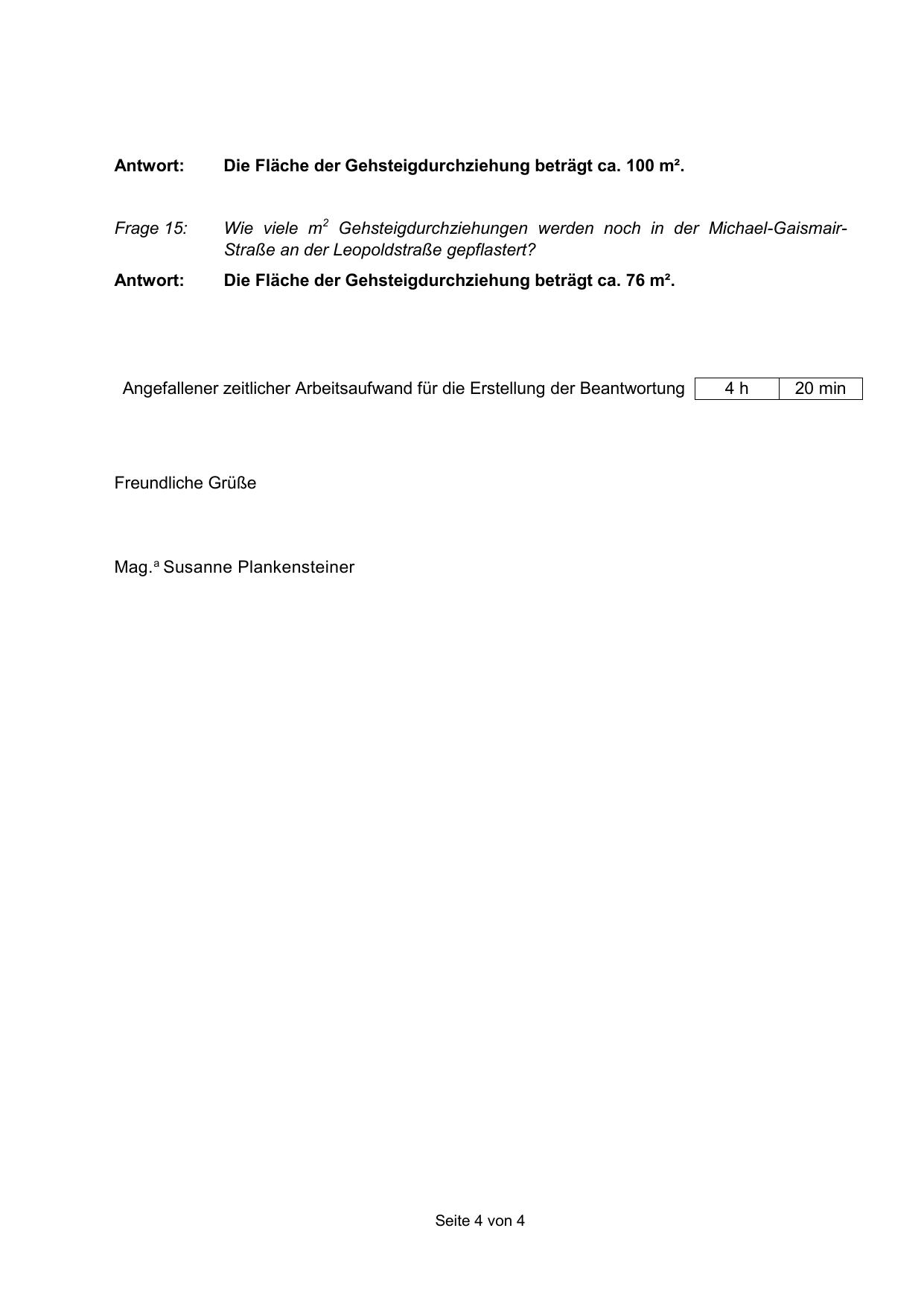 Angefallener zeitlicher Arbeitsaufwand für die Erstellung der Beantwortung