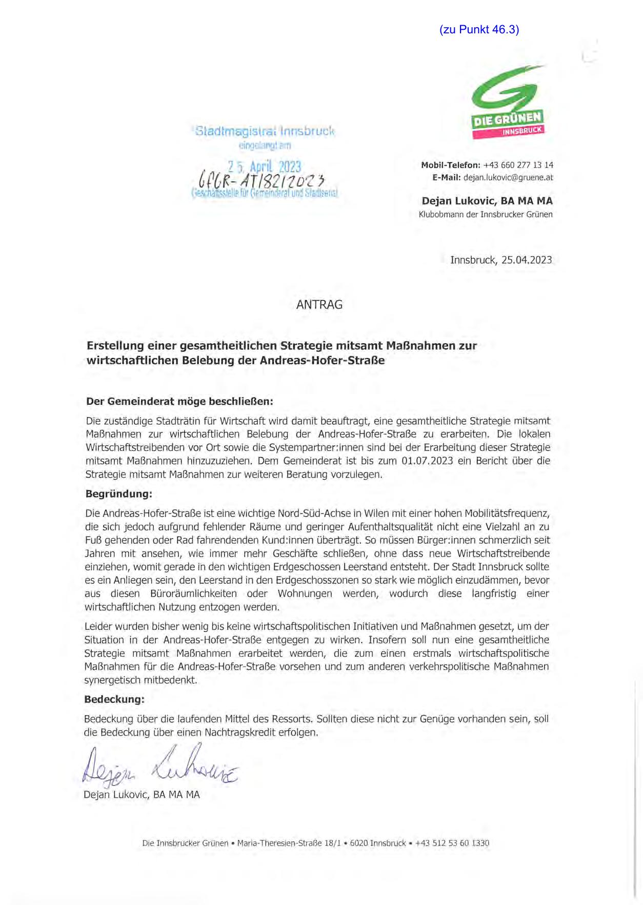 Maßnahmen zur wirtschaftlichen Belebung der Andreas-Hafer-Straße zu erarbeiten. Die lokalen