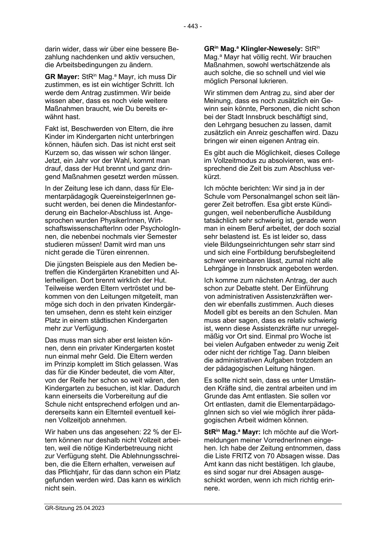 GR Mayer: StRin Mag.a Mayr, ich muss Dir