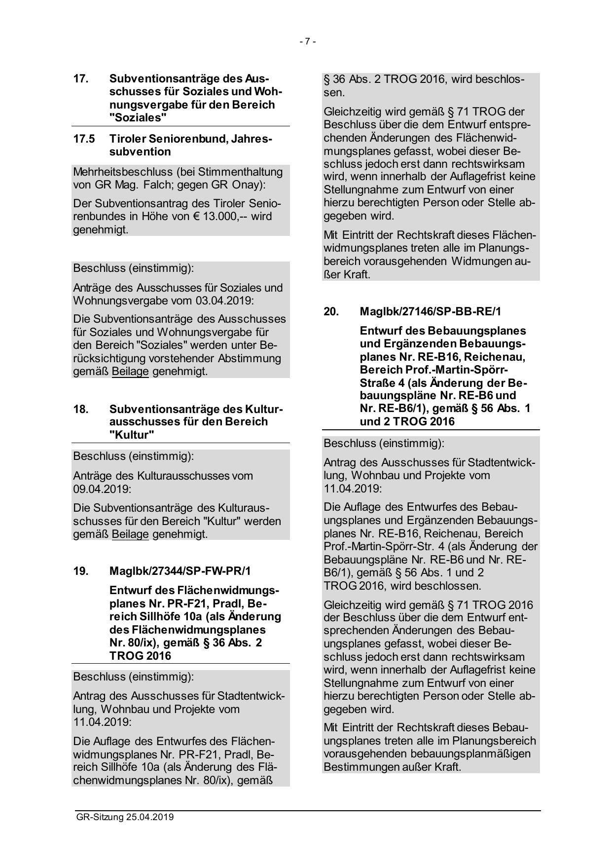 § 36 Abs. 2 TROG 2016, wird beschlossen.