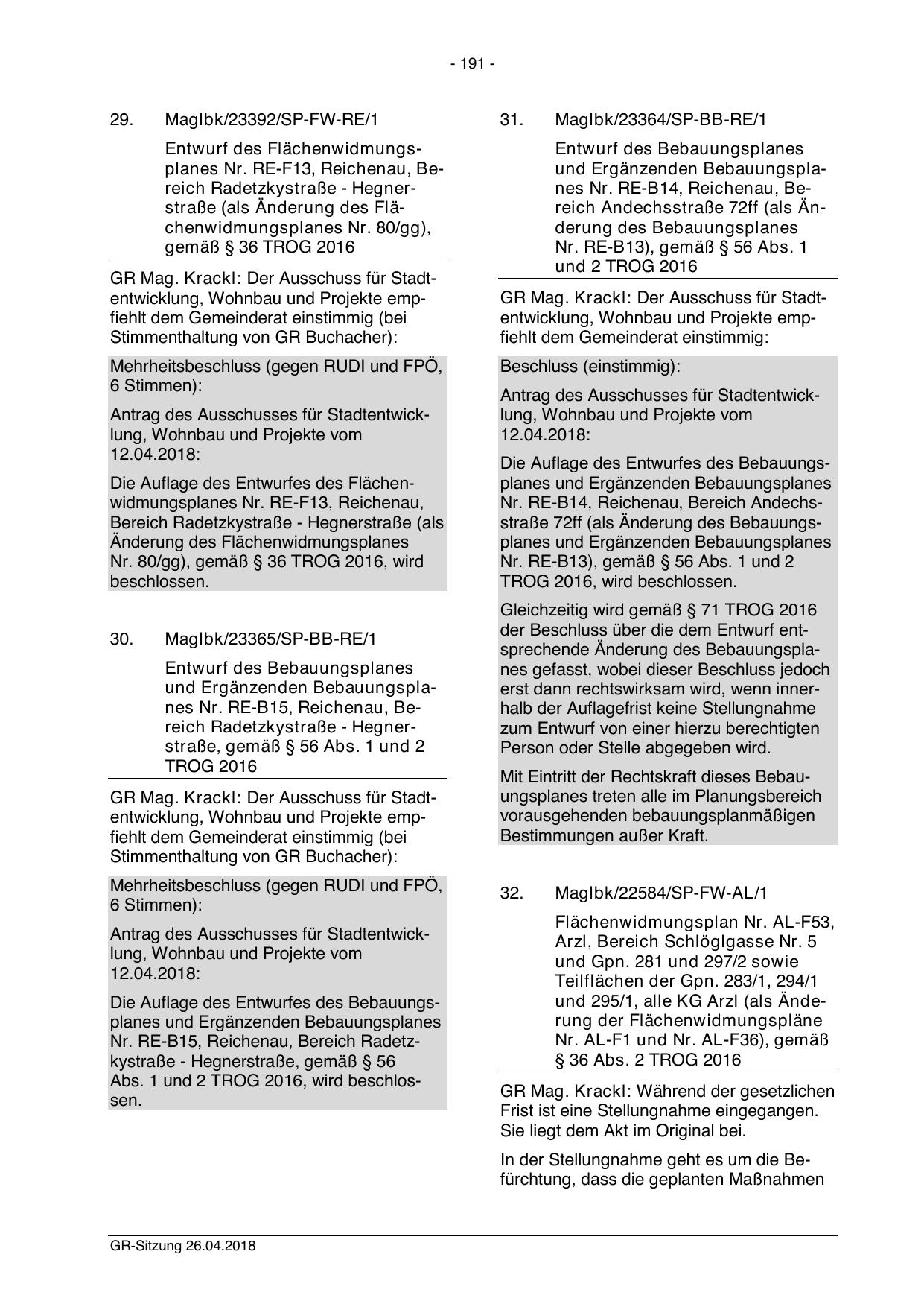 Stimmenthaltung von GR Buchacher):