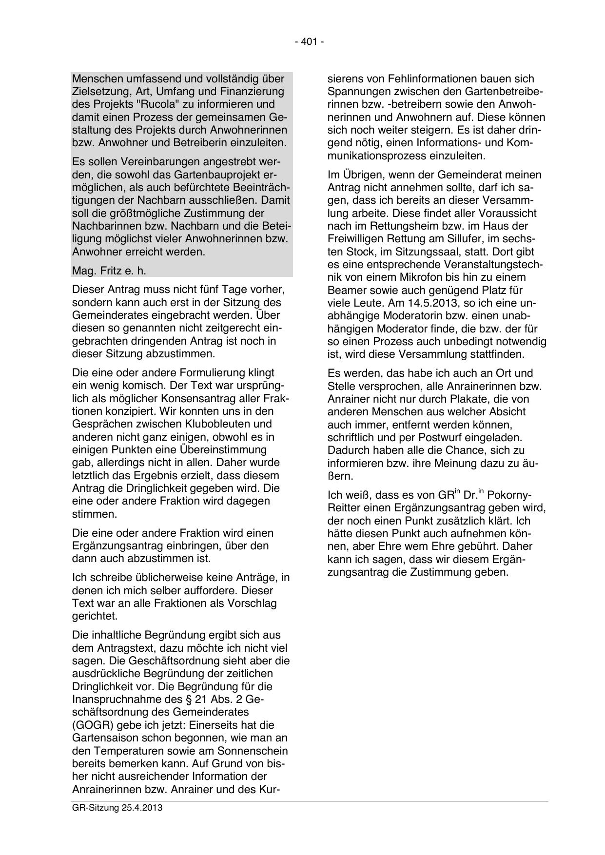 Anrainerinnen bzw. Anrainer und des KurGR-Sitzung 25.4.2013