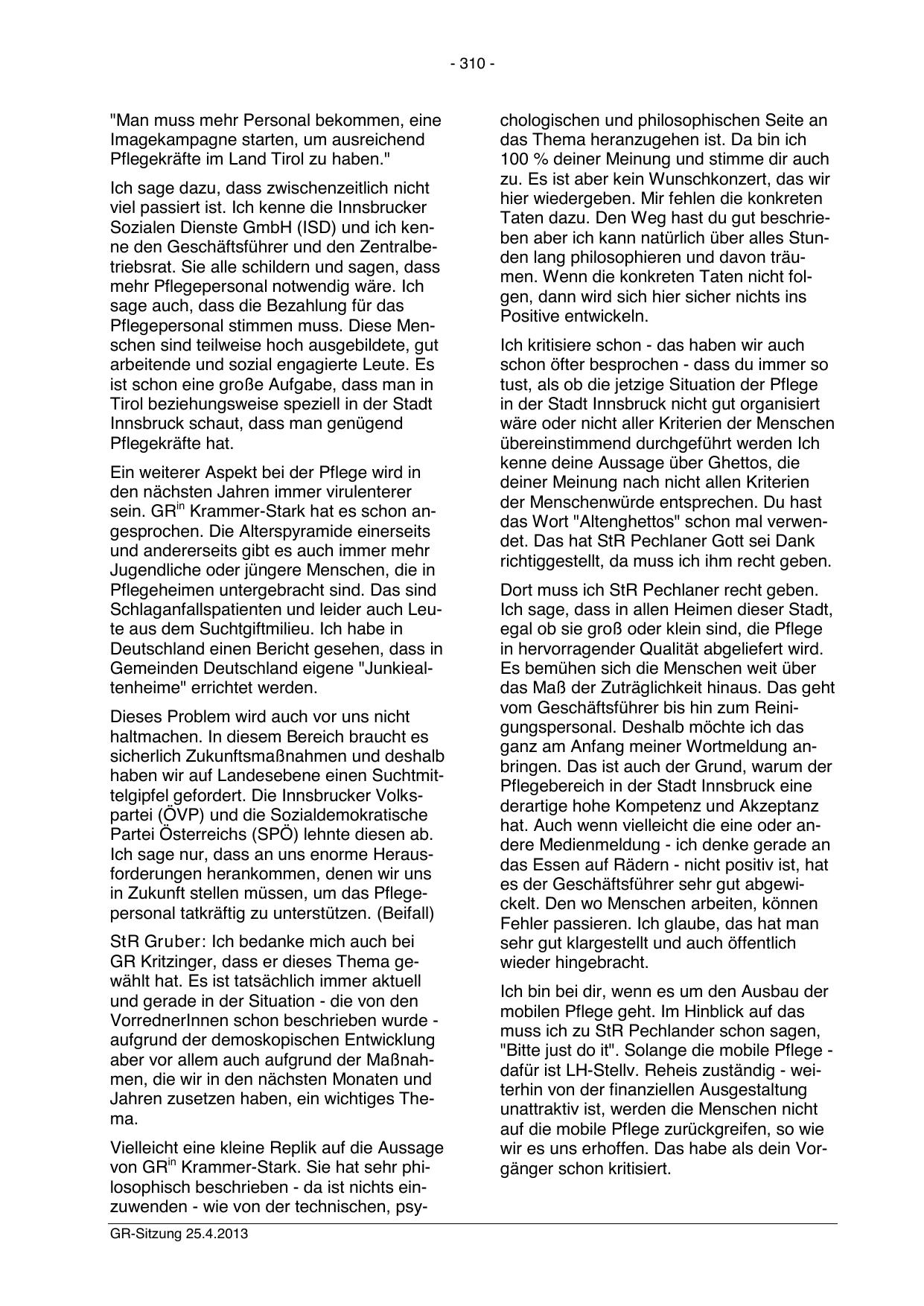 von GRin Krammer-Stark. Sie hat sehr philosophisch beschrieben - da ist nichts einzuwenden - wie von der technischen, psyGR-Sitzung 25.4.2013