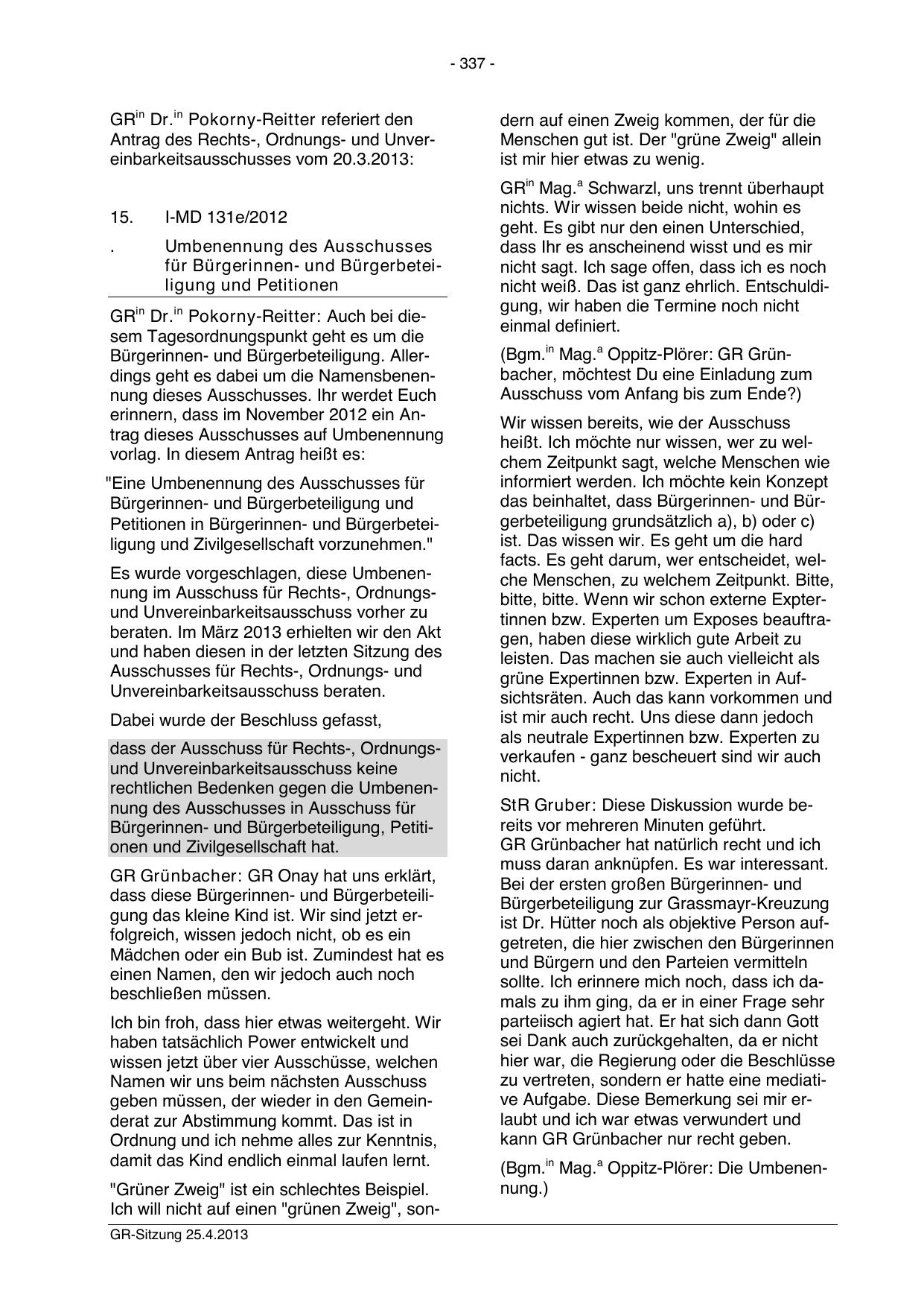 Ich will nicht auf einen "grünen Zweig", sonGR-Sitzung 25.4.2013