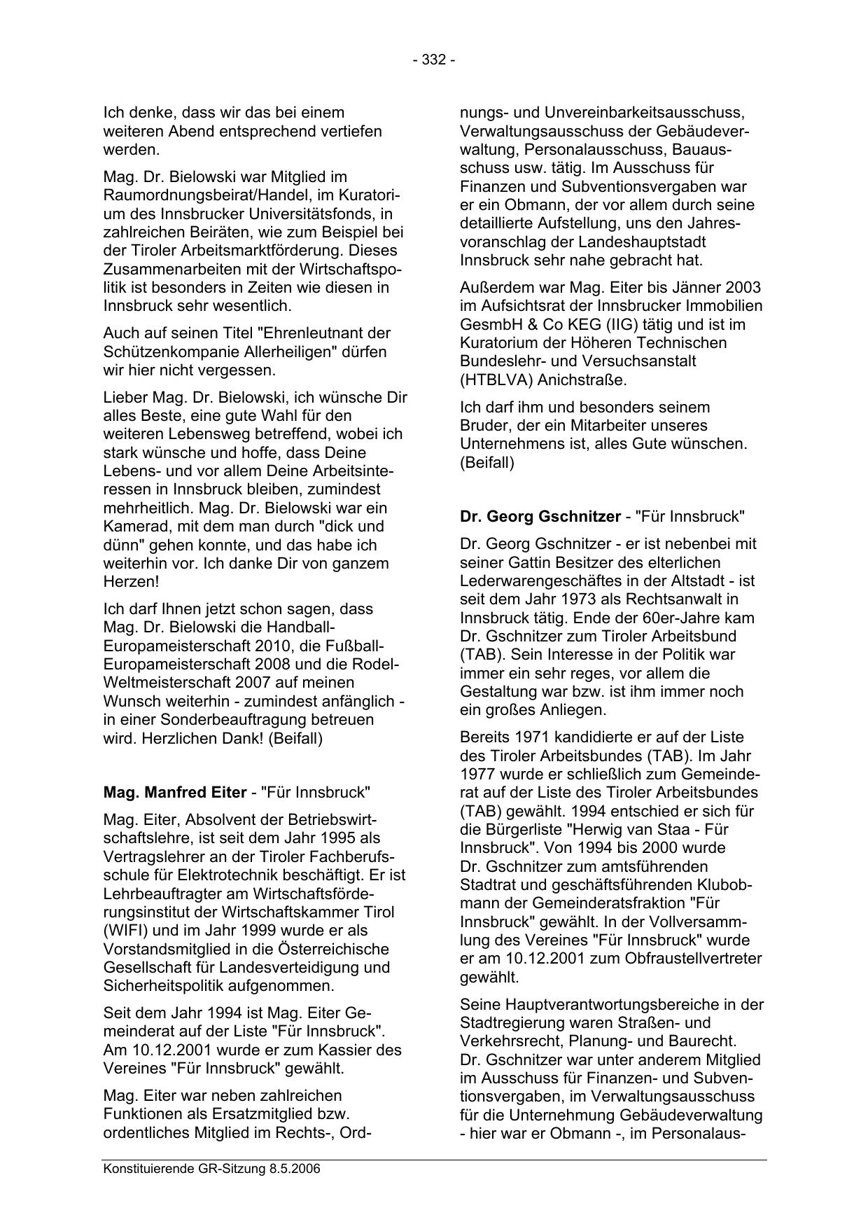 Innsbruck" gewählt. In der Vollversammlung des Vereines "Für Innsbruck" wurde