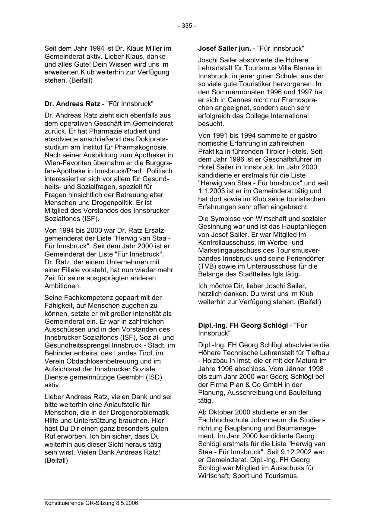 Staa - Für Innsbruck". Seit 9.12.2002 war