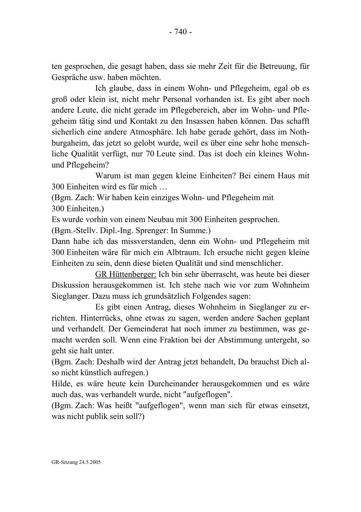 sicherlich eine andere Atmosphäre. Ich habe gerade gehört, dass im Nothburgaheim, das jetzt so gelobt wurde, weil es über eine sehr hohe menschliche Qualität verfügt, nur 70 Leute sind. Das ist doch ein kleines Wohnund Pflegeheim?