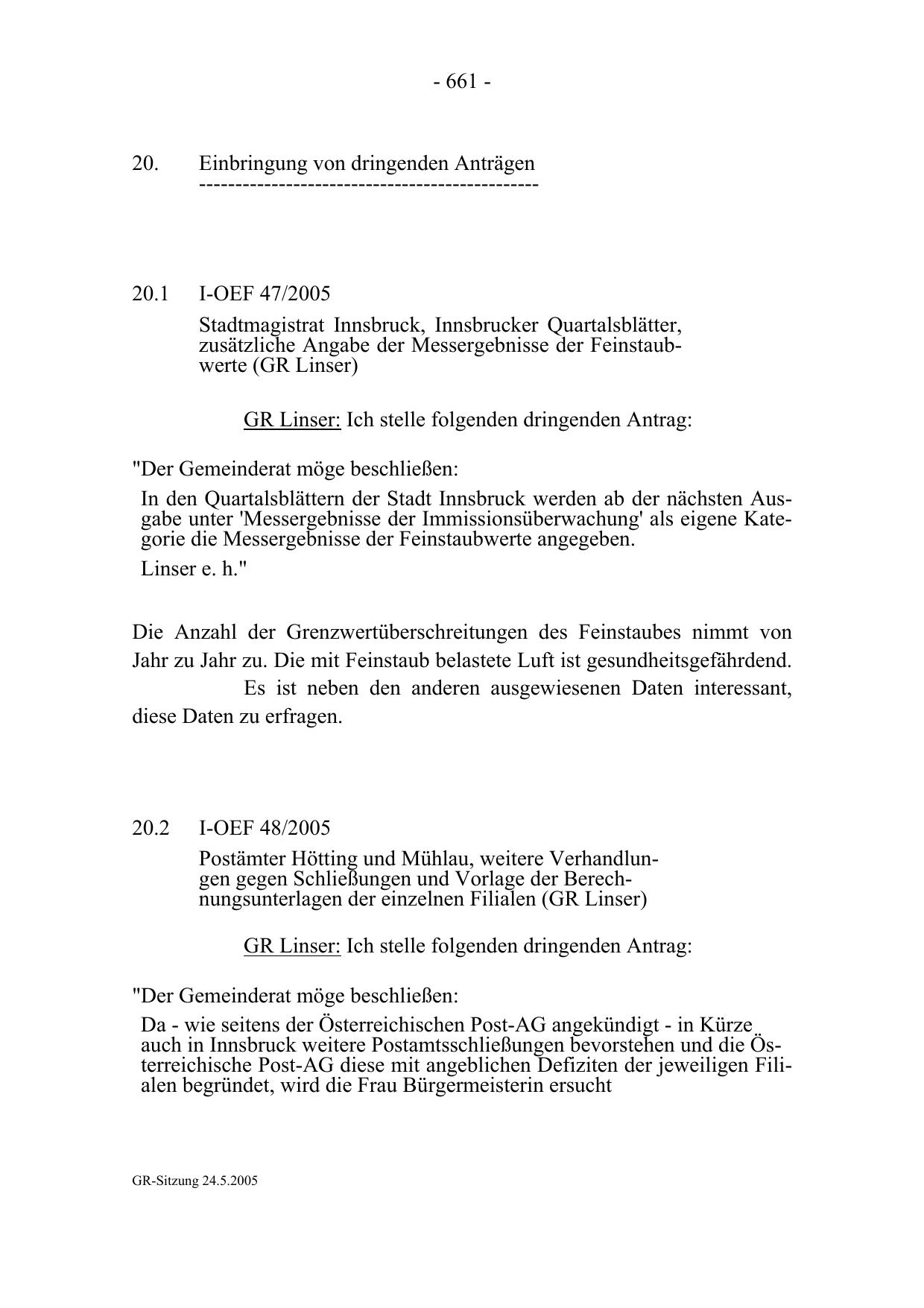 GR Linser: Ich stelle folgenden dringenden Antrag: