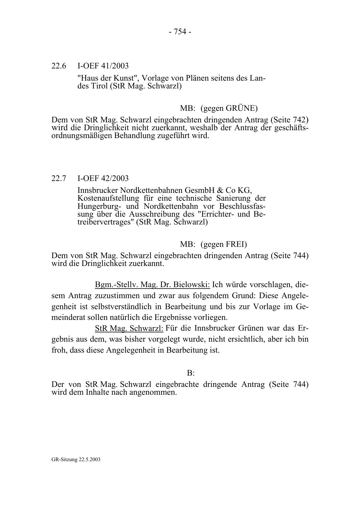 Dem von StR Mag. Schwarzl eingebrachten dringenden Antrag (Seite 742)