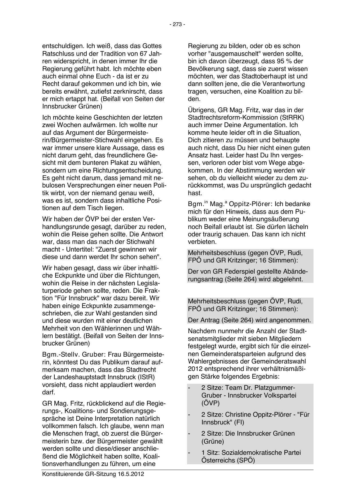 Mehrheit von den Wählerinnen und Wählern bestätigt. (Beifall von Seiten der Innsbrucker Grünen)