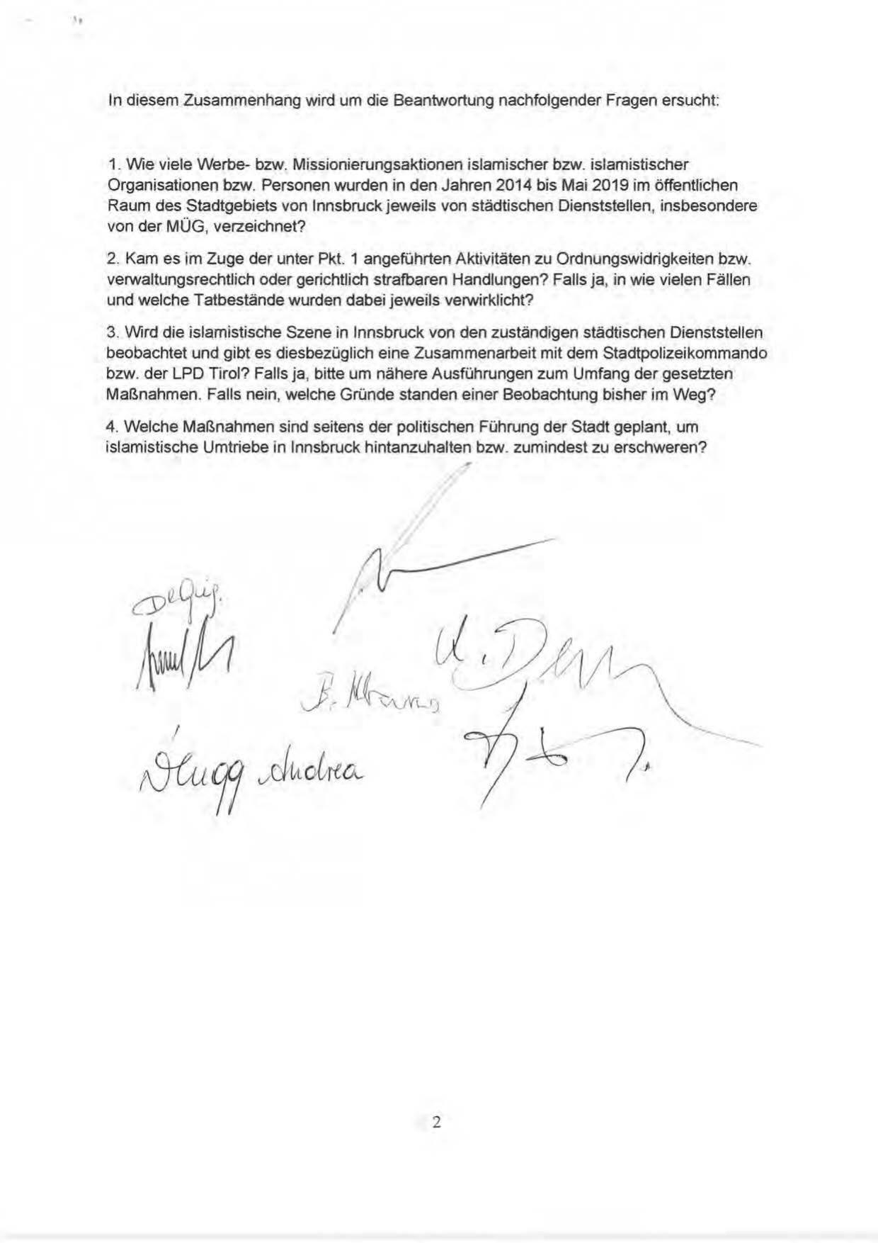 3. Wird die islamistische Szene in Innsbruck von den zuständigen städtischen Dienststellen