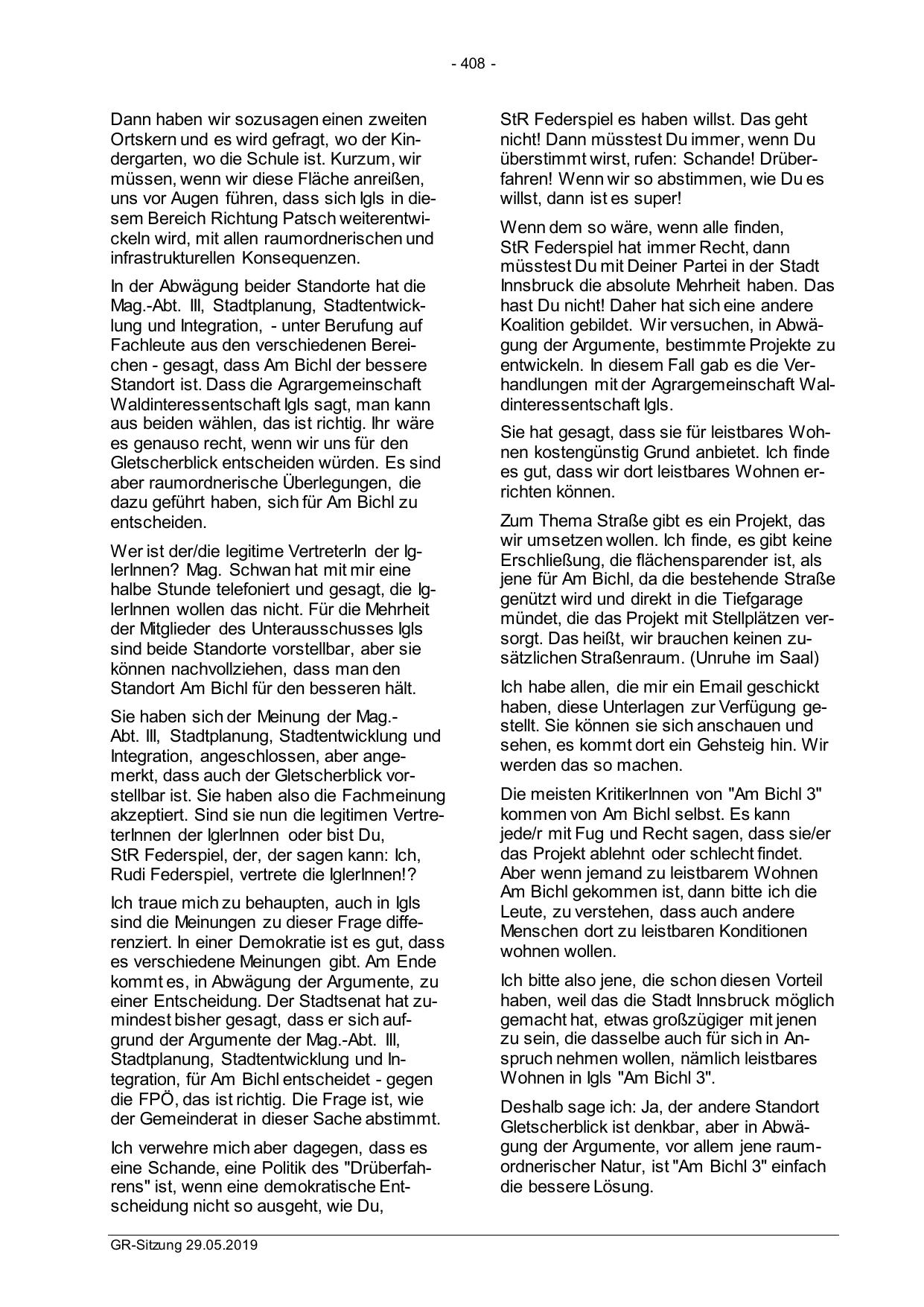 halbe Stunde telefoniert und gesagt, die IglerInnen wollen das nicht. Für die Mehrheit