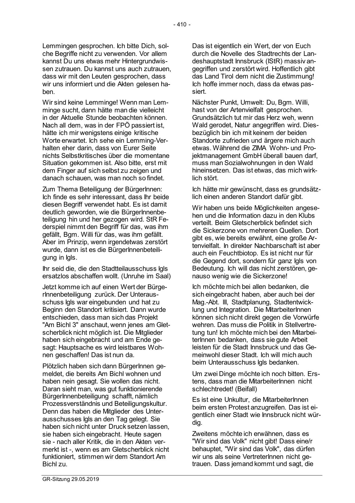 durch die Novelle des Stadtrechts der Landeshauptstadt Innsbruck (IStR) massiv angegriffen und zerstört wird. Hoffentlich gibt