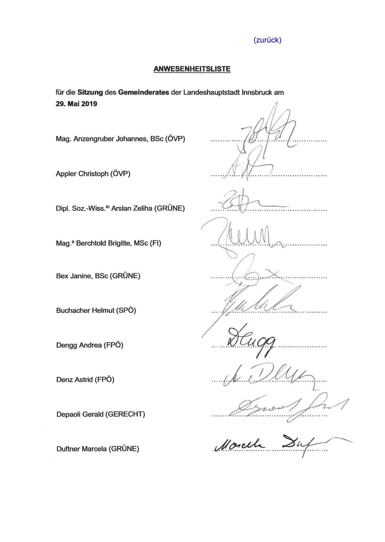 für die Sitzung des Gemeinderates der Landeshauptstadt Innsbruck am