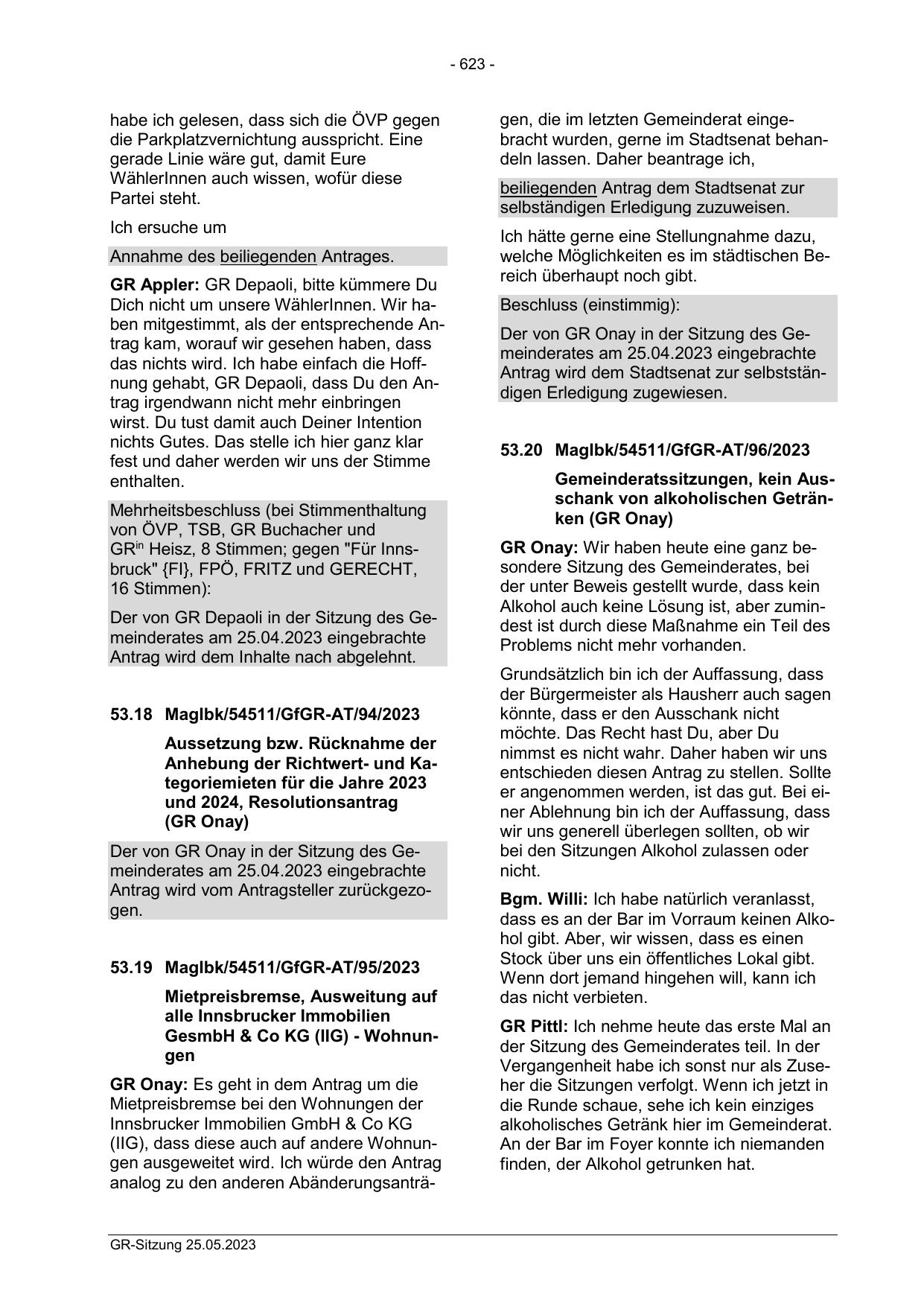 Der von GR Depaoli in der Sitzung des Gemeinderates am 25.04.2023 eingebrachte