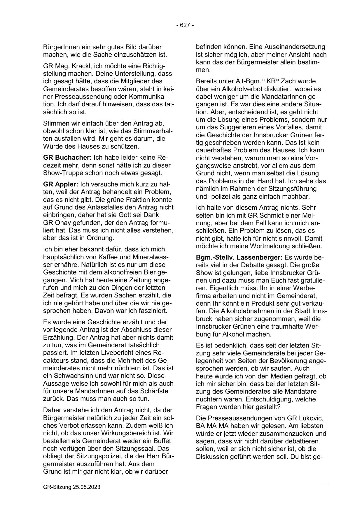 Gemeinderates besoffen wären, steht in keiner Presseaussendung oder Kommunikation. Ich darf darauf hinweisen, dass das tatsächlich so ist.