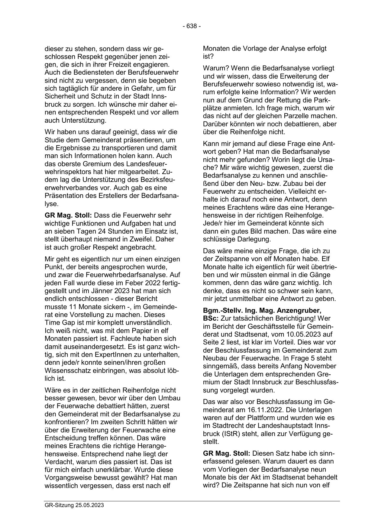 Sicherheit und Schutz in der Stadt Innsbruck zu sorgen. Ich wünsche mir daher einen entsprechenden Respekt und vor allem