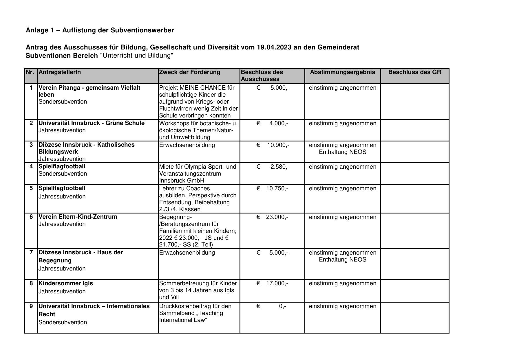 Antrag des Ausschusses für Bildung, Gesellschaft und Diversität vom 19.04.2023 an den Gemeinderat