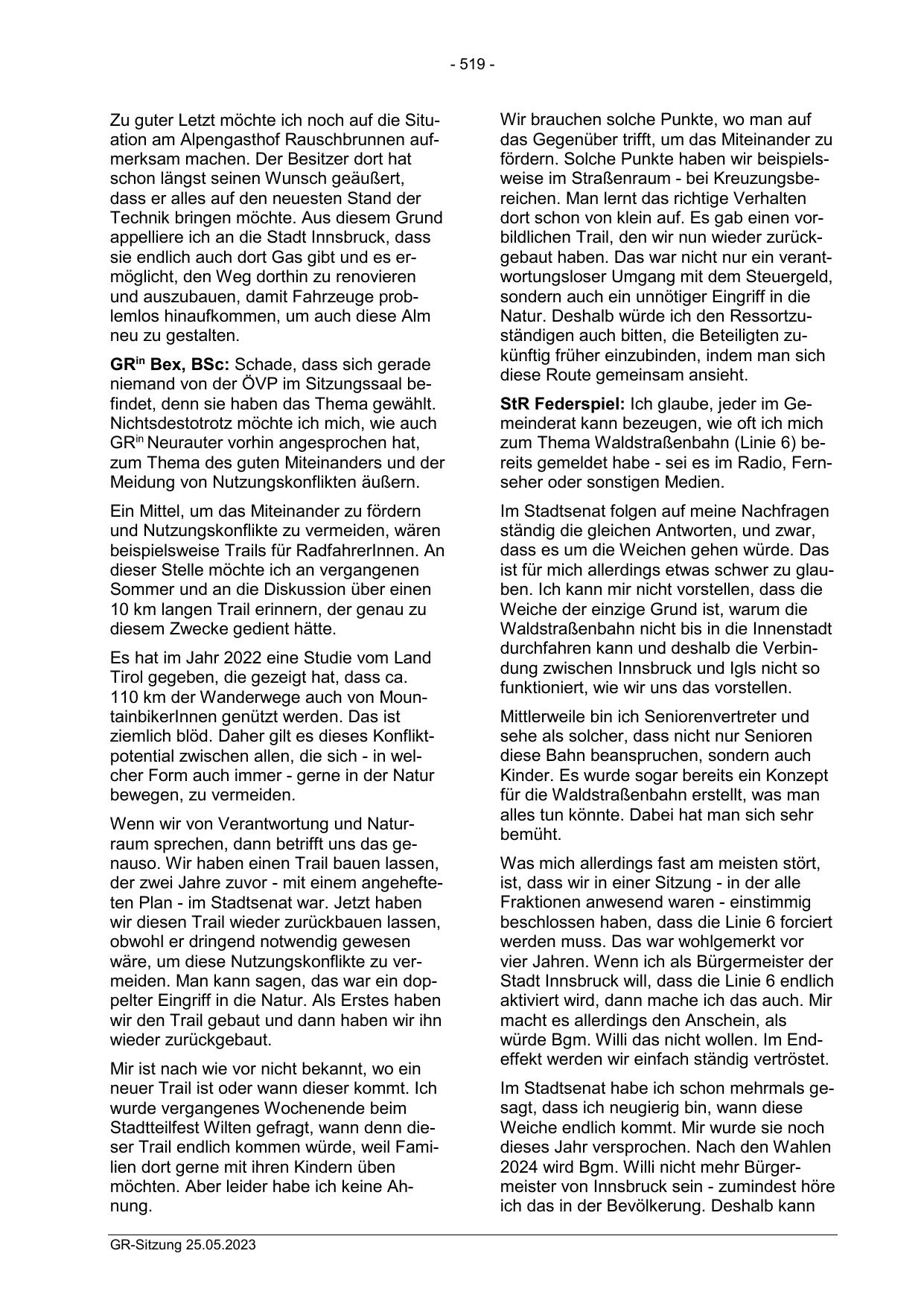 würde Bgm. Willi das nicht wollen. Im Endeffekt werden wir einfach ständig vertröstet.