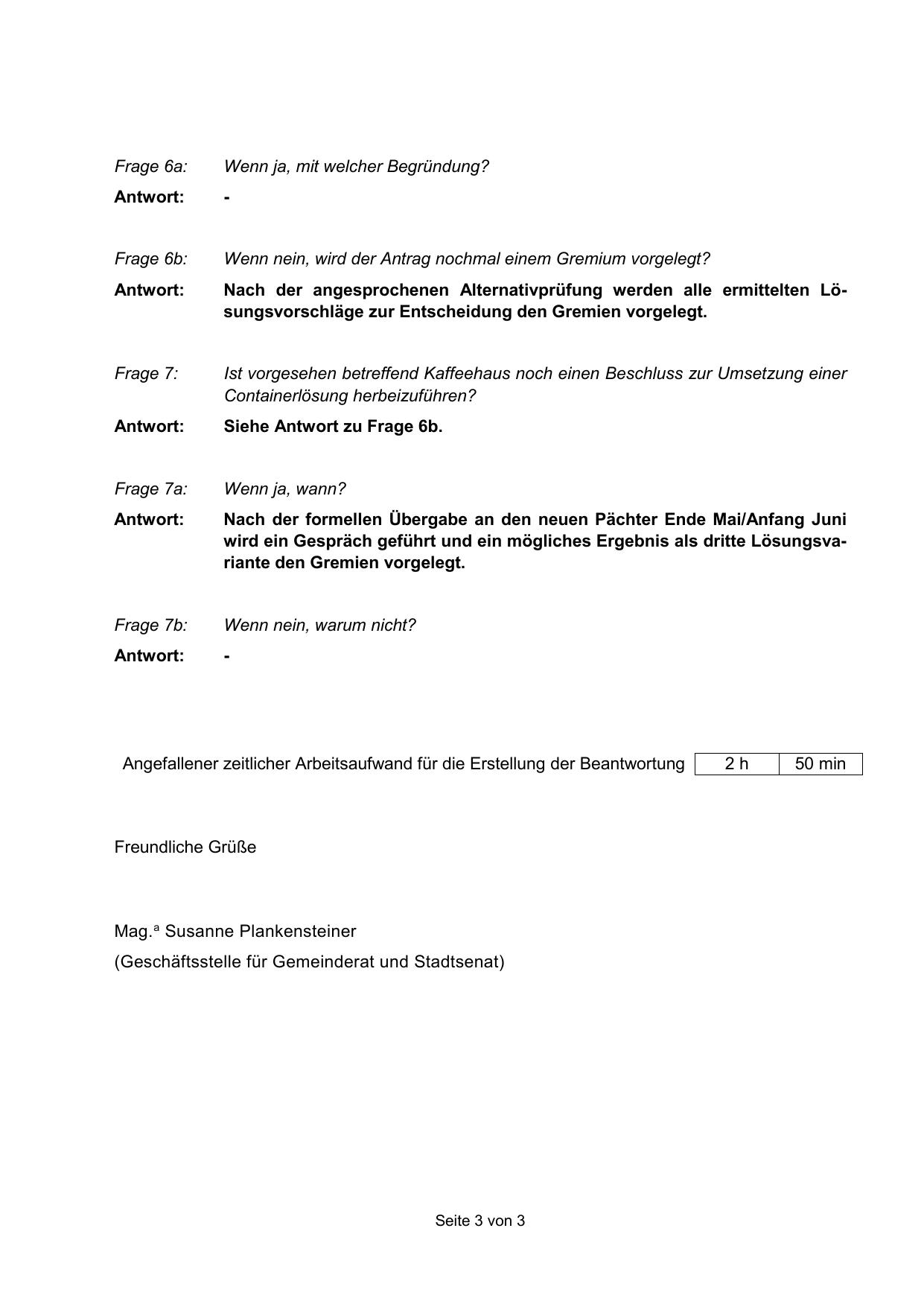 Ist vorgesehen betreffend Kaffeehaus noch einen Beschluss zur Umsetzung einer