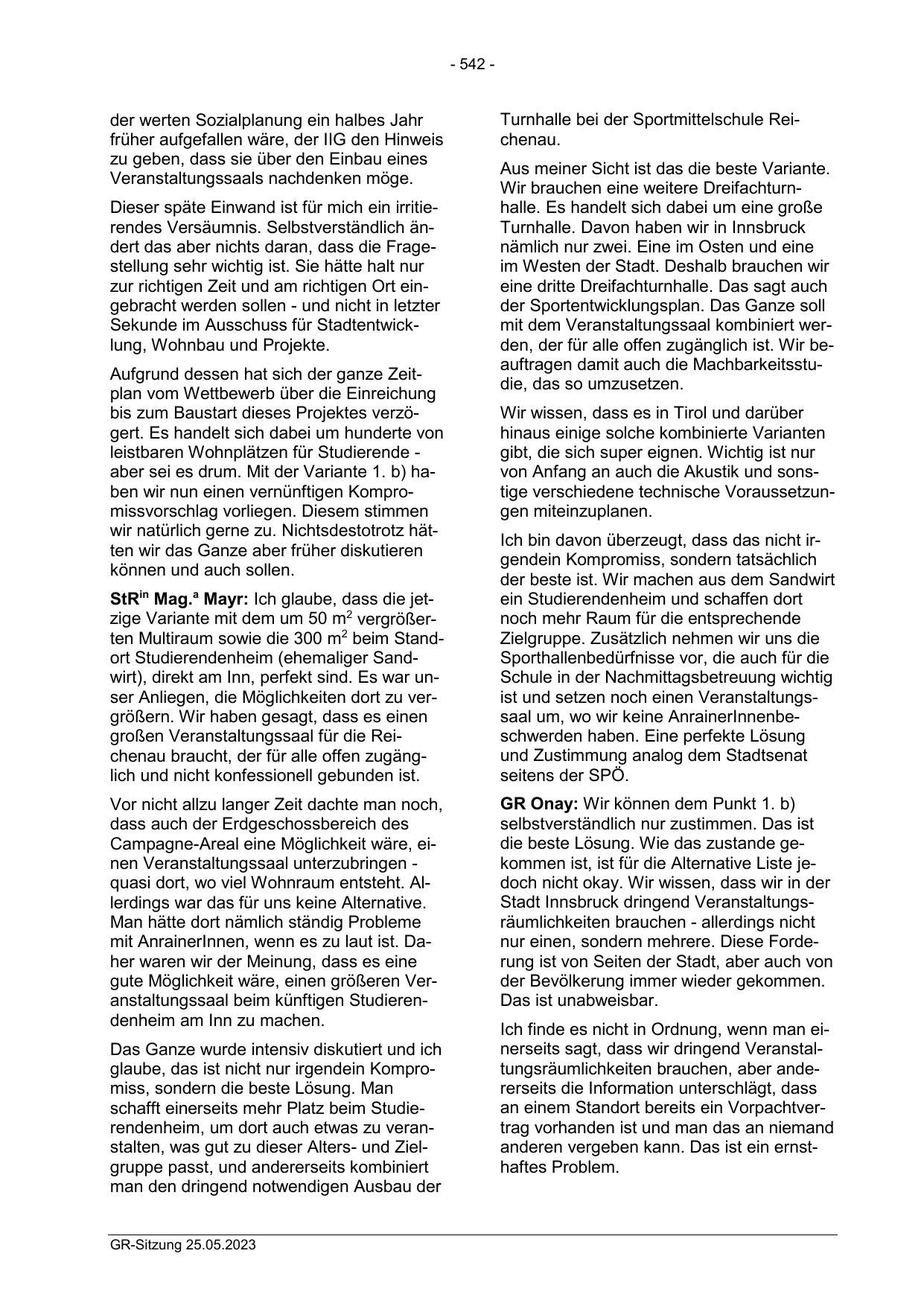 gute Möglichkeit wäre, einen größeren Veranstaltungssaal beim künftigen Studierendenheim am Inn zu machen.