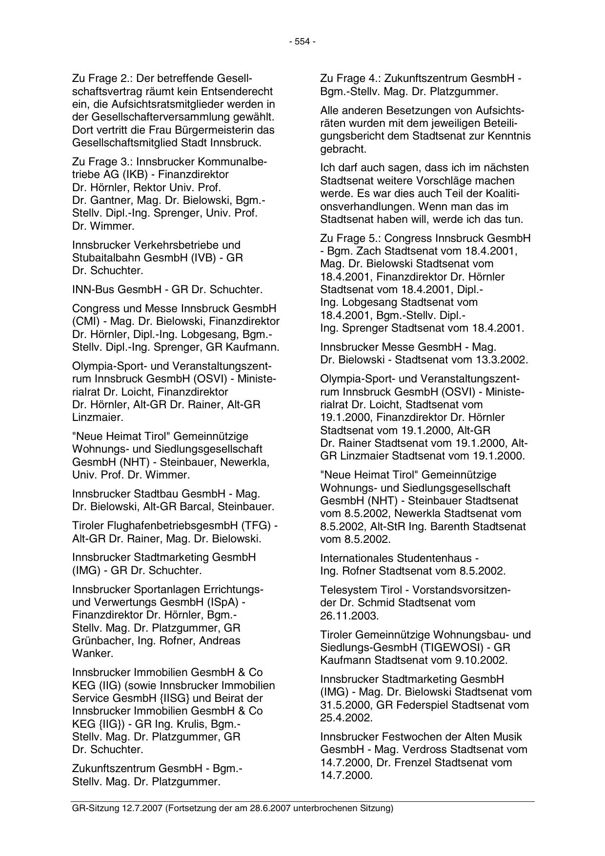 GR-Sitzung 12.7.2007 (Fortsetzung der am 28.6.2007 unterbrochenen Sitzung)
