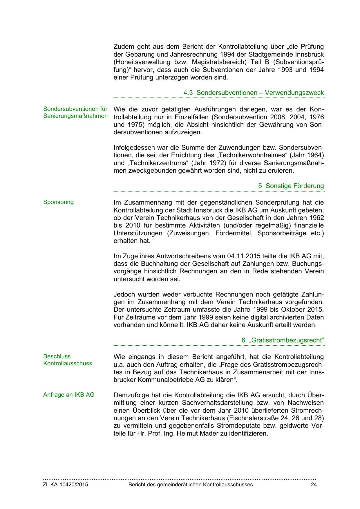 Kontrollabteilung der Stadt Innsbruck die IKB AG um Auskunft gebeten,