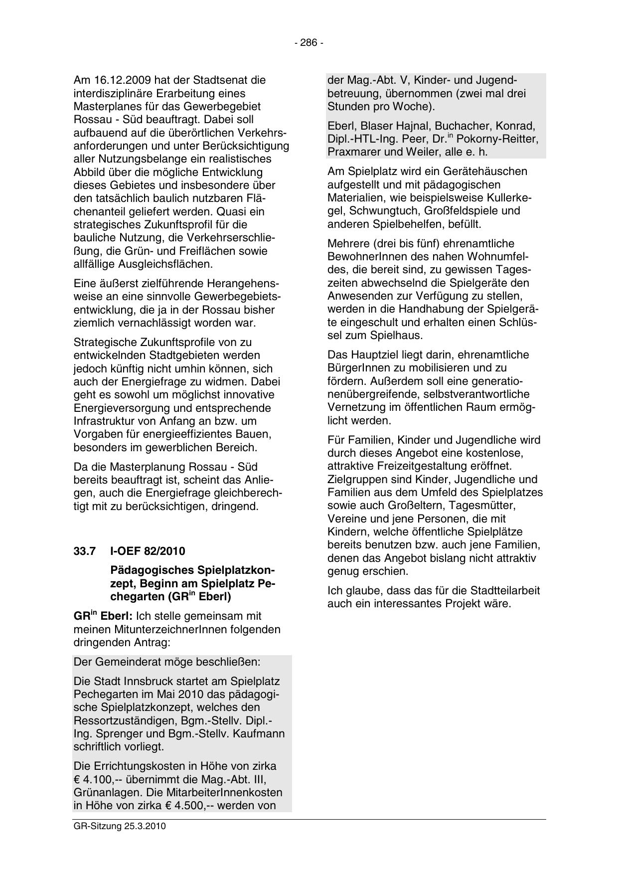 Pädagogisches Spielplatzkonzept, Beginn am Spielplatz Pechegarten (GRin Eberl)
