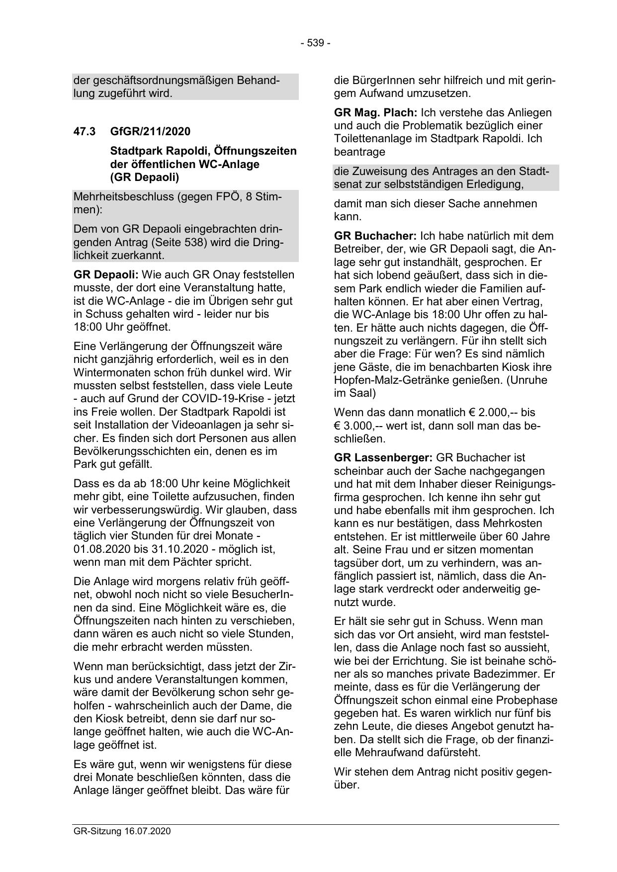 Dem von GR Depaoli eingebrachten dringenden Antrag (Seite 538) wird die Dringlichkeit zuerkannt.