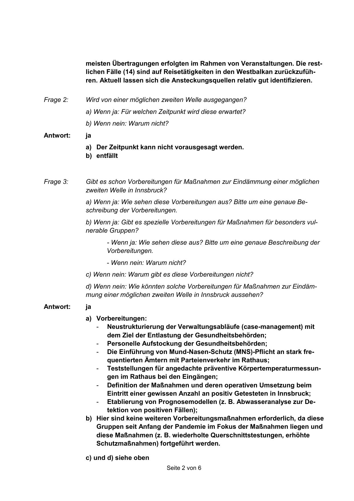 d) Wenn nein: Wie könnten solche Vorbereitungen für Maßnahmen zur Eindämmung einer möglichen zweiten Welle in Innsbruck aussehen?