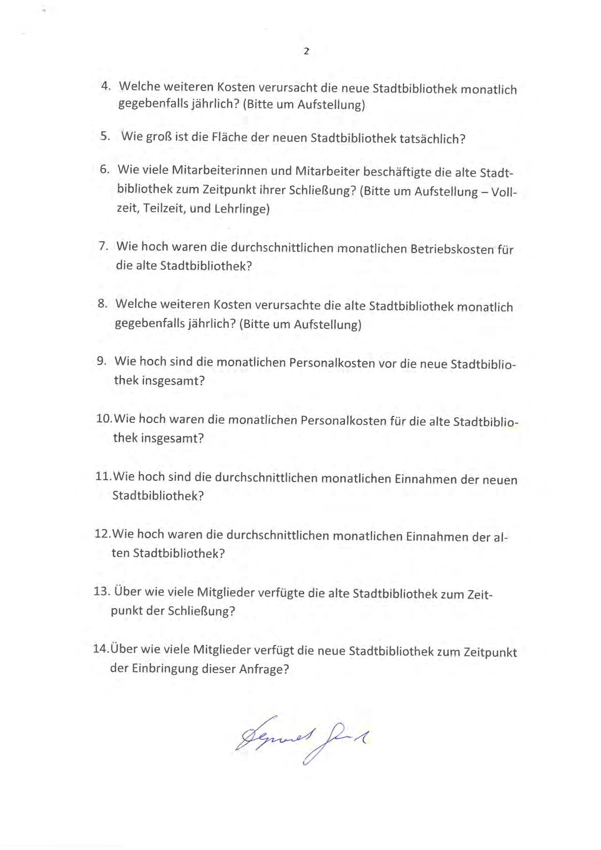 14.Ü ber wie viele Mitglieder verf ügt die neue Stadtbibliothek zum Zeitpunkt