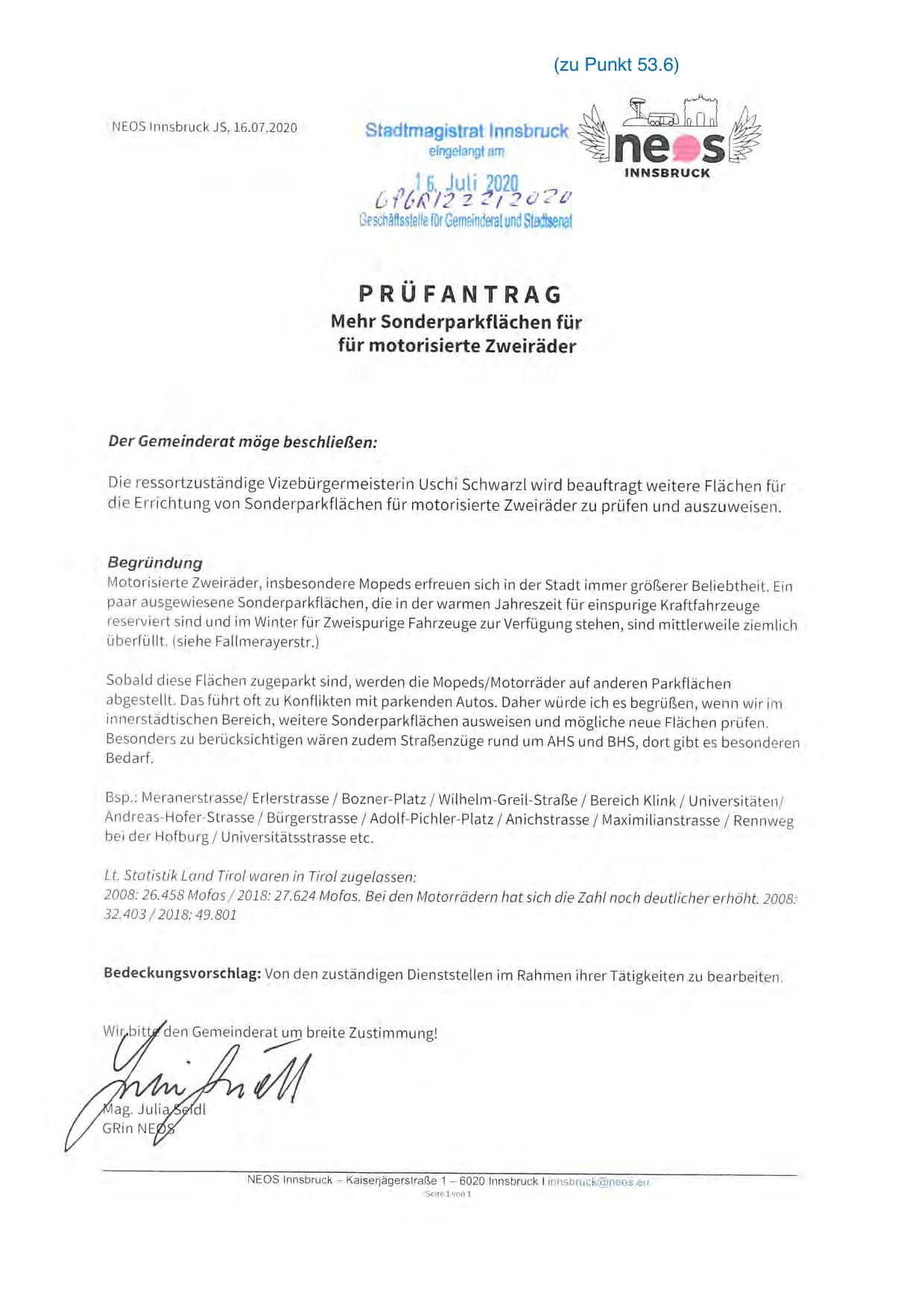 NEOS Innsbruck - Kaiserjä gerstraß e 1 - 6020 Innsbruck I innsbruck @ neos . eu