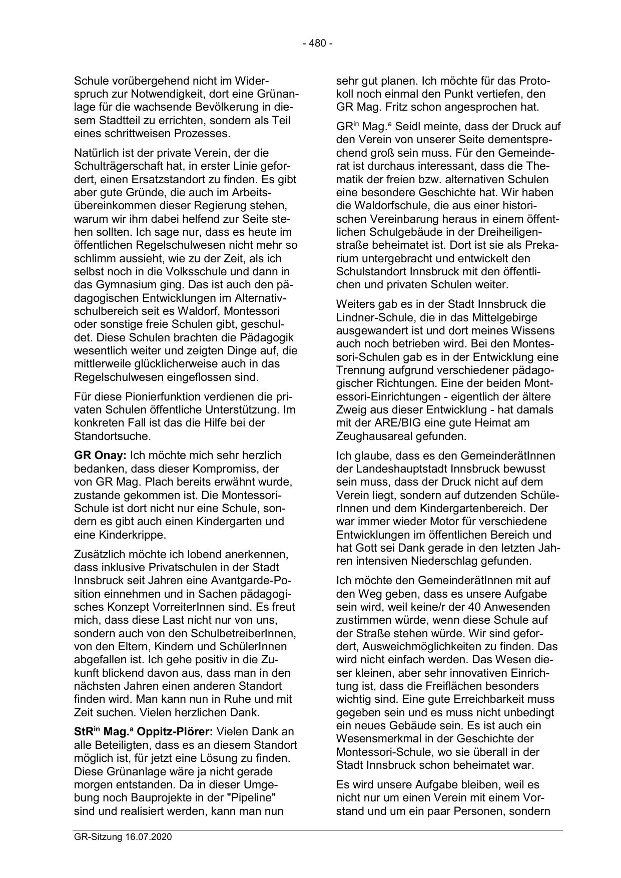 den Verein von unserer Seite dementsprechend groß sein muss. Für den Gemeinderat ist durchaus interessant, dass die Thematik der freien bzw. alternativen Schulen