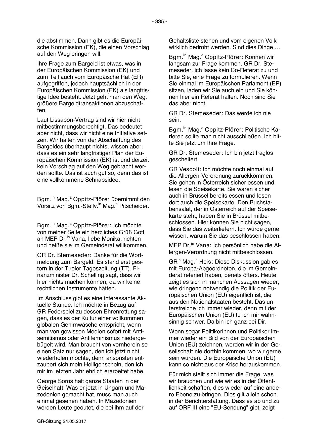 GR Dr. Stemeseder: Danke für die Wortmeldung zum Bargeld. Es stand erst gestern in der Tiroler Tageszeitung (TT). Finanzminister Dr. Schelling sagt, dass wir