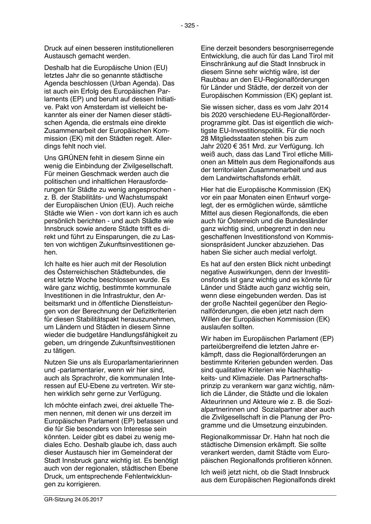 Stadt Innsbruck ganz wichtig ist. Es benötigt