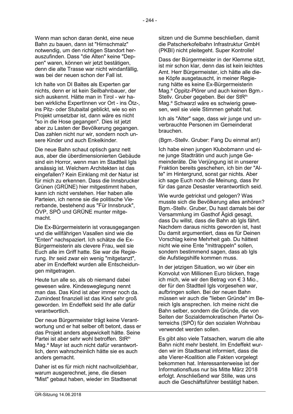 Mag.a Oppitz-Plörer und auch keinen Bgm.Stellv. Gruber gegeben. Bei der StRin