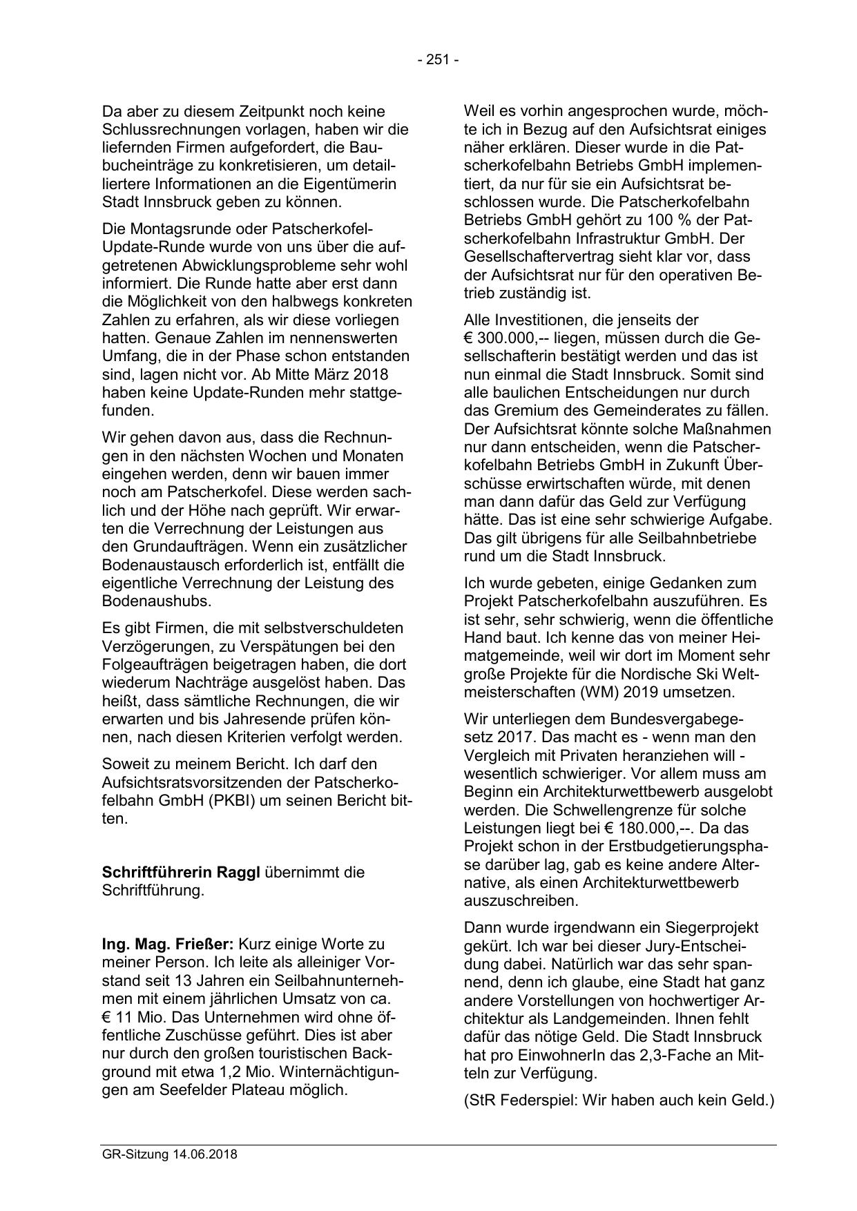 näher erklären. Dieser wurde in die Patscherkofelbahn Betriebs GmbH implementiert, da nur für sie ein Aufsichtsrat beschlossen wurde. Die Patscherkofelbahn