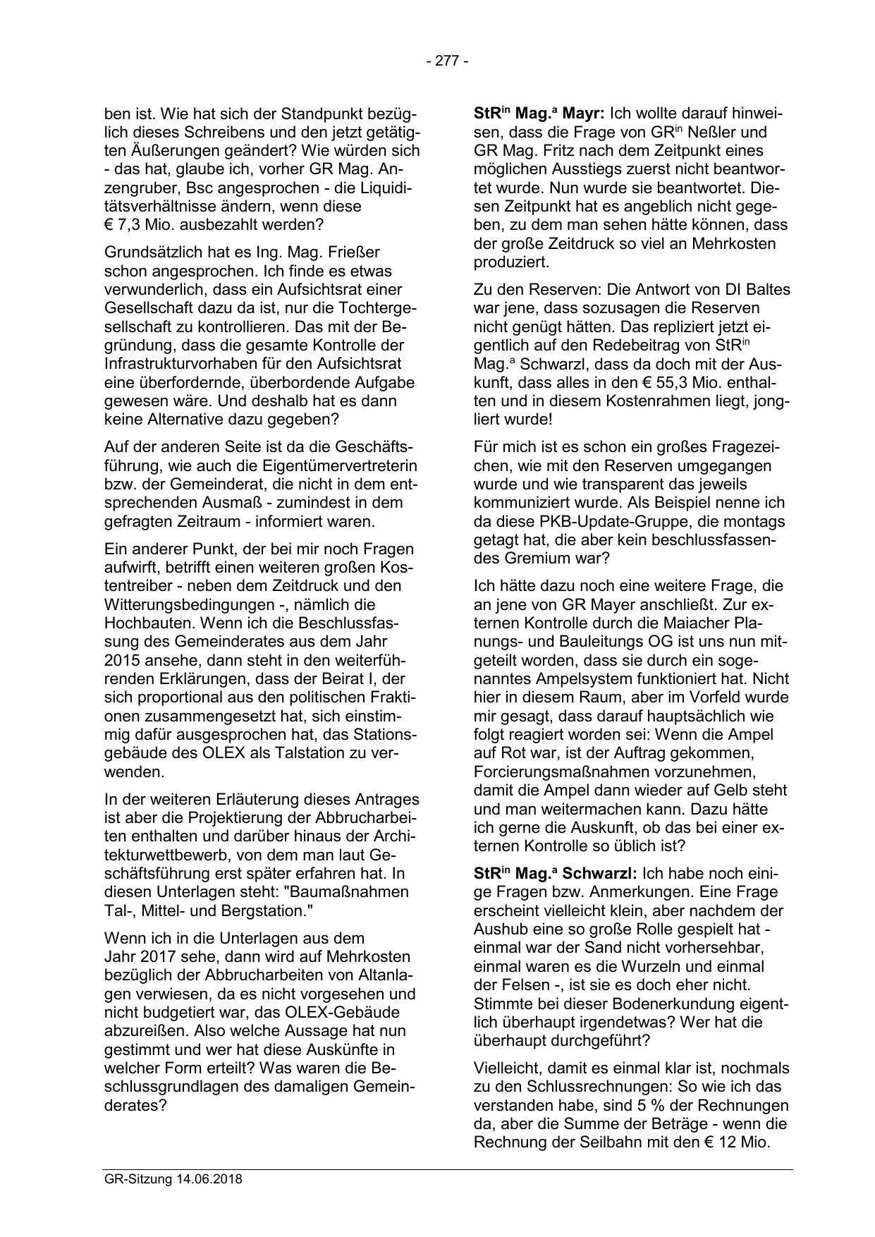 Mag.a Schwarzl, dass da doch mit der Auskunft, dass alles in den € 55,3 Mio. enthalten und in diesem Kostenrahmen liegt, jongliert wurde!